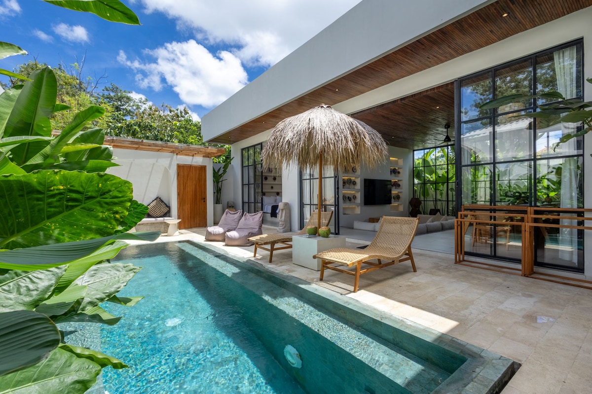 Bingin'in ən gözəl yerində təzə, birinci mərtəbədə 2 otaqlı mənzil - Cemongkak Beach və El Kabron-a cəmi 2 dəqiqə və Dreamland Beach parkından 200 m məsafədə. Yağışlı günlərdə film marafonları üçün şəxsi tropik bağ, sonsuz hovuz, sürətli Wi-Fi (iki provayderli quraşdırma) və HBO Max və Disney+ ilə rahat ev kinoteatrından zövq alın. Düşünülmüş dizayn, zərif hamam otaqları və sahilyanı yaşayış üçün lazım olan hər şey. Qrup səfərləri üçün mükəmməl qalmağa yer.