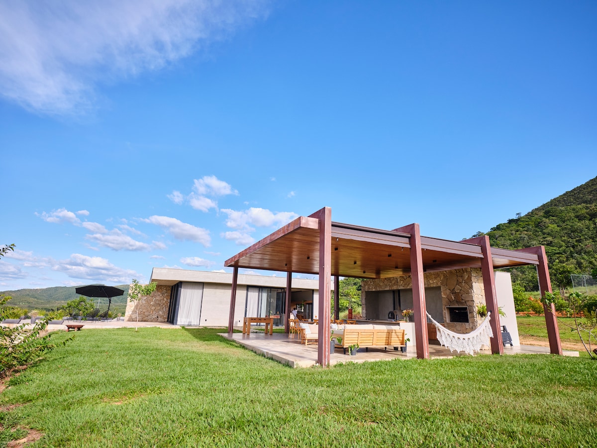 Rahatlığı və heyrətamiz mənzərəsi olan 300 m² ev. Geniş və havası olan evin 4 yataq otağı var və Braziliya şəhərindən cəmi 30 dəqiqəlik məsafədədir. Təbii su hovuzu (kimyəvi maddələr olmadan) ilə inteqrasiya edilmiş, vadiyə gözəl mənzərəsi olan böyük qurman sahəsindən zövq alın. 20 000 m² fermada yerləşən əmlak davamlı prinsiplərə uyğun inşa edilib və meyvə ağacları olan bağları var. Gəlin və günəşin qürubunun cazibəsini yaşayın və gecələr Brazilyanın ulduzlu səmasını düşünün.