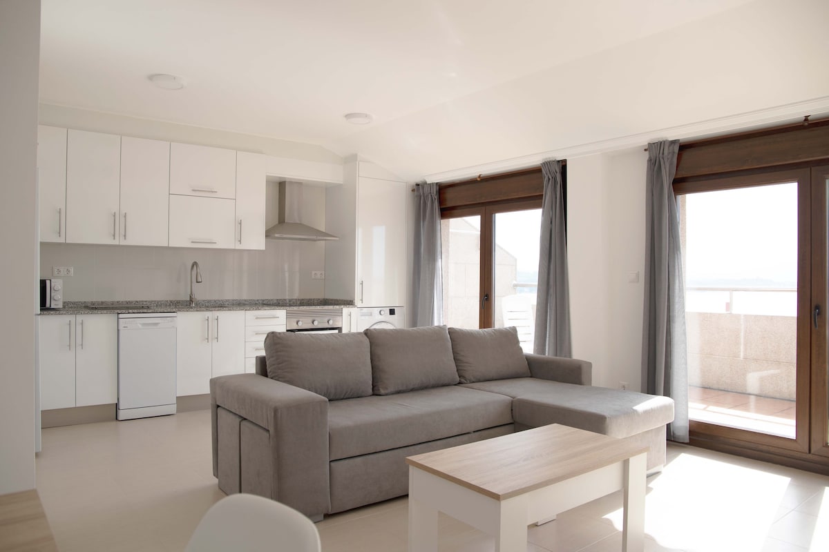 Loft üslubunda mənzil. İkinəfərlik çarpayısı olan otaq, qonaq otağı – mətbəx, hamam otağı və paltardəyişmə otağı var. Televizor, Paltaryuyan, Qabyuyan maşın, Kondisioner (kondisioner), kürəcikli buxarı, Wİ-Fİ və cakuzi. Kənd yerində, sakit və çox yaxşı əlaqəli Salnés magistralına və Autopista AP 9-a çıxışı olan, Rías Baixas əsas şəhər və kəndləri ilə O Mosteiroya giriş imkanı ilə yerləşir. Cütlüklər və subaylar üçün əladır. Avtomobil gəzmək üçün tövsiyə olunur.