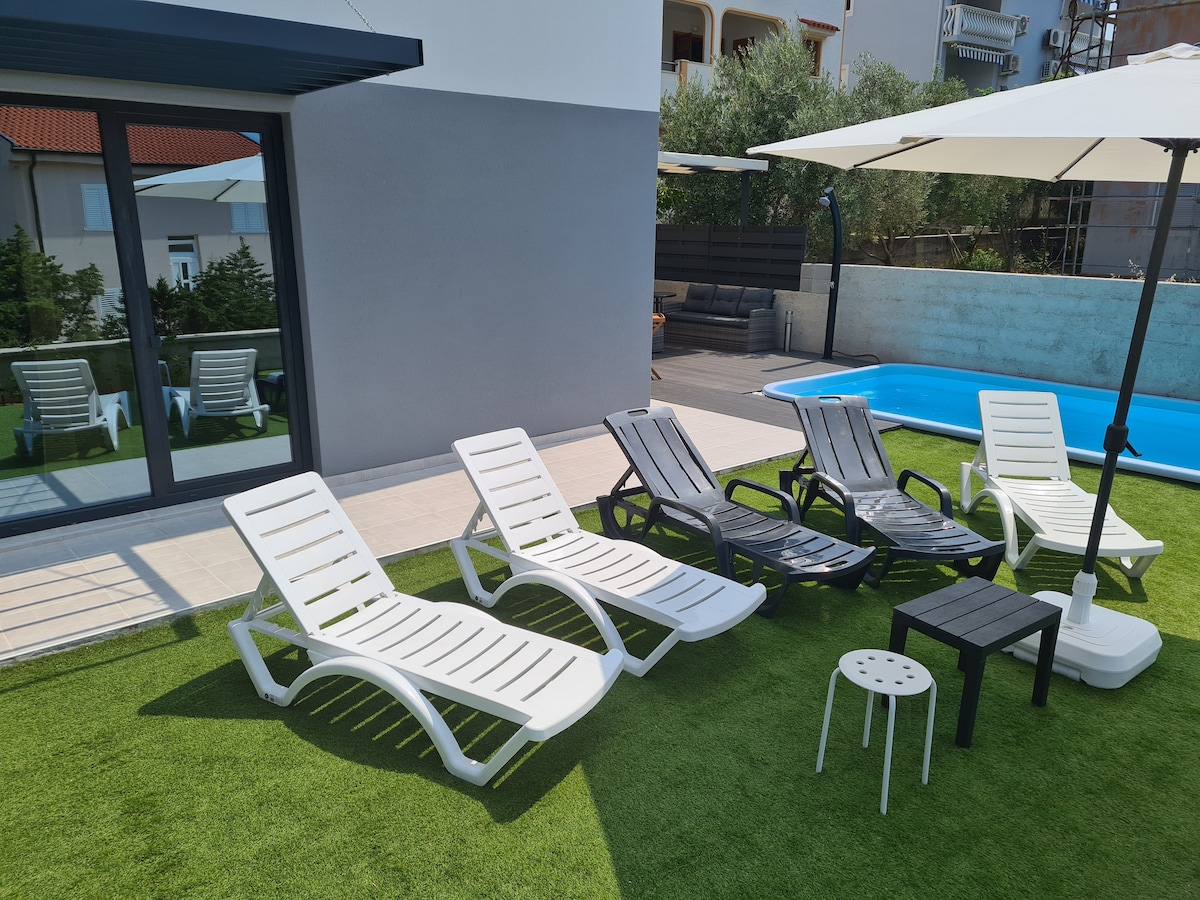 Novaljanın sakit və eksklüziv ərazisində yerləşən müasir yeni zərif villa. Lüks, məxfilik və ən yaxşı mövqenin mükəmməl qarışığı. Villada hər birində ayrıca hamam otağı və balkon olan 4 yataq otağı var. Mətbəxi və əlavə hamam otağı olan geniş qonaq otağı. Barbekü, yemək sahəsi, ayrıca hovuz, 2-3 avtomobil üçün ayrıca parkinqi olan açıq hava mətbəxi. Çimərlikdən cəmi 150 m, şəhər mərkəzindən isə 200 m məsafədədir. Ətrafda restoranlar, barlar, mağazalar və avtobus dayanacağından Zrće Beach-ə cəmi 150 m məsafədə yerləşir.