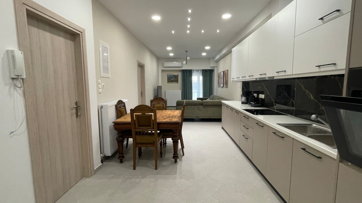 Volosun mərkəzinə çox yaxın, 1-ci mərtəbə, 50 kvm-lik tam təmirli mənzil (cəmi 7 dəq məsafədə) Pulsuz xüsusi parkinq, avtonom istilik sistemi, kondisioner, paltaryuyan maşın var. 1 yataq otağı, 1 ikinəfərlik çarpayı və 50’’ televizor, divan çarpayısı və ağıllı tv olan qonaq otağı, hamam otağı, mətbəx və masadan ibarətdir. Parlaq və isti, Volosda qonaqladığınız müddət ərzində əla vaxt keçirmək üçün uyğundur. Bu, uşaqları, cütlükləri, dostları və peşəkarları olan ailələr üçün idealdır.
