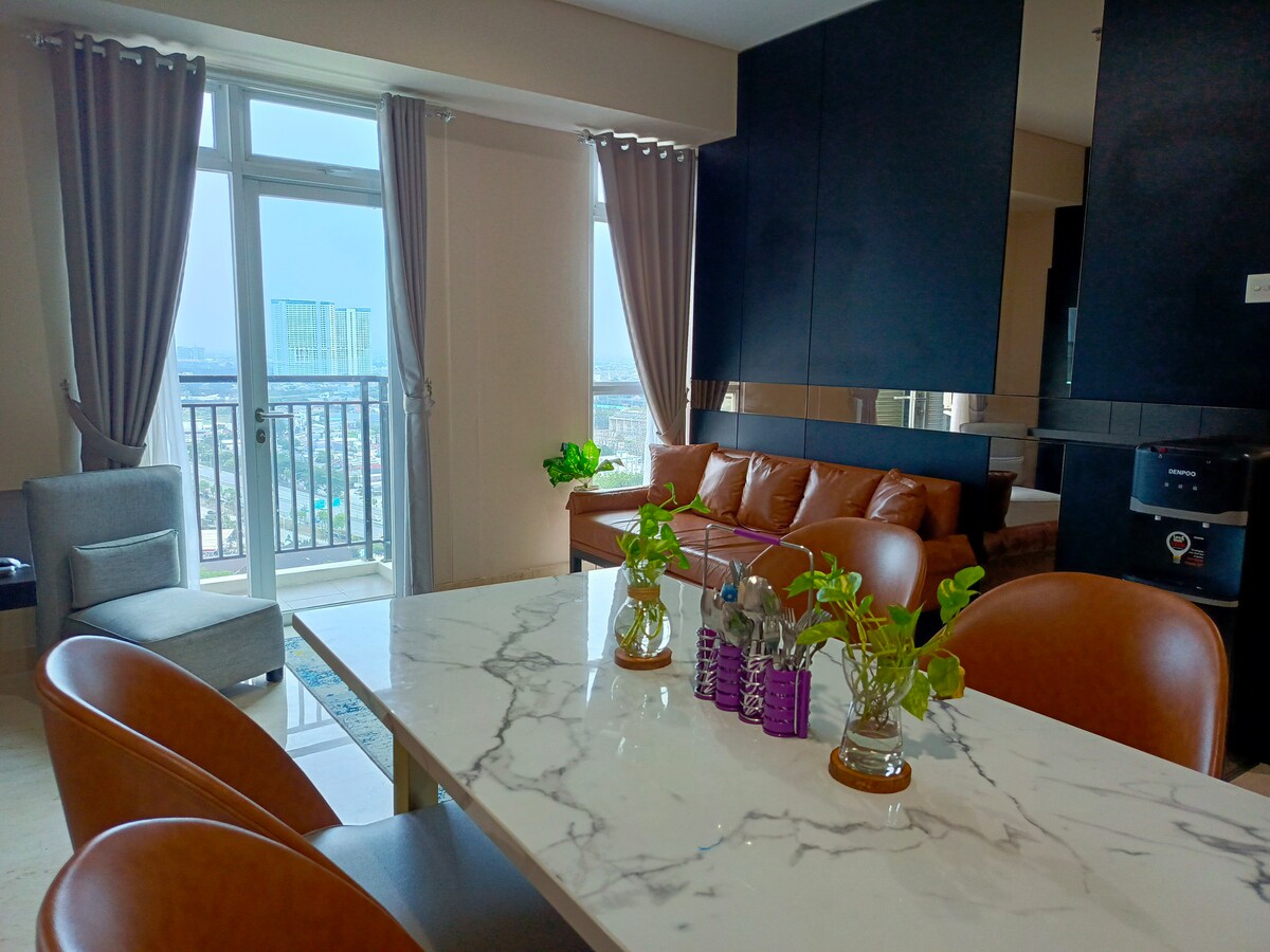 Xüsusi təklif üçün bron etmək üçün söhbət edin :) Ailə yönümlü Branz BSD 1BR Mənzilimizdə lüks və rahatlıqdan zövq alın. AC, Wi-Fi və düz ekranlı televizor kimi ləvazimatlarla tam təchiz edilmiş mənzilimiz dörd nəfərə qədər şəxs üçün idealdır. BSD Şəhərində mərkəzi mövqeyi ilə yaxınlıqdakı attraksionlara, restoranlara və mağazalara asan girişiniz olacaq. Mənzil kompleksi üzgüçülük hovuzu və fitnes mərkəzi daxil olmaqla 24 saat mühafizə xidməti və bir sıra imkanlar təklif edir. Unudulmaz qonaqlama üçün indi bron edin!