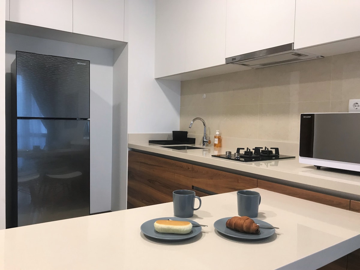 BSD City-nin mərkəzində yerləşən dəbdəbəli iki otaqlı mənzilimizdə üslub, komfort və rahatlığın mükəmməl qarışığına xoş gəlmisiniz. Bu müasir iki yataq otaqlı mənzil cütlüklər, kiçik ailələr, rəqəmsal köçərilər və işgüzar səyahətçilər üçün mükəmməl yamyaşıl botanika parkına və sakit gölə baxan rahat istirahət təklif edir. Bir neçə dəqiqə ərzində The Breeze (Restoran, həyat tərzi və əyləncə), Green Office Park, Aeon Mall, ICE, EKA Hospital, Grand Lucky və daha çoxuna çata bilərsiniz.