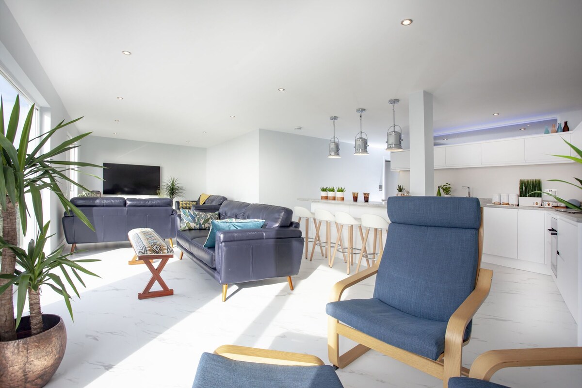 Lüks sahil mənzili w/ panoramik dəniz mənzərəli
