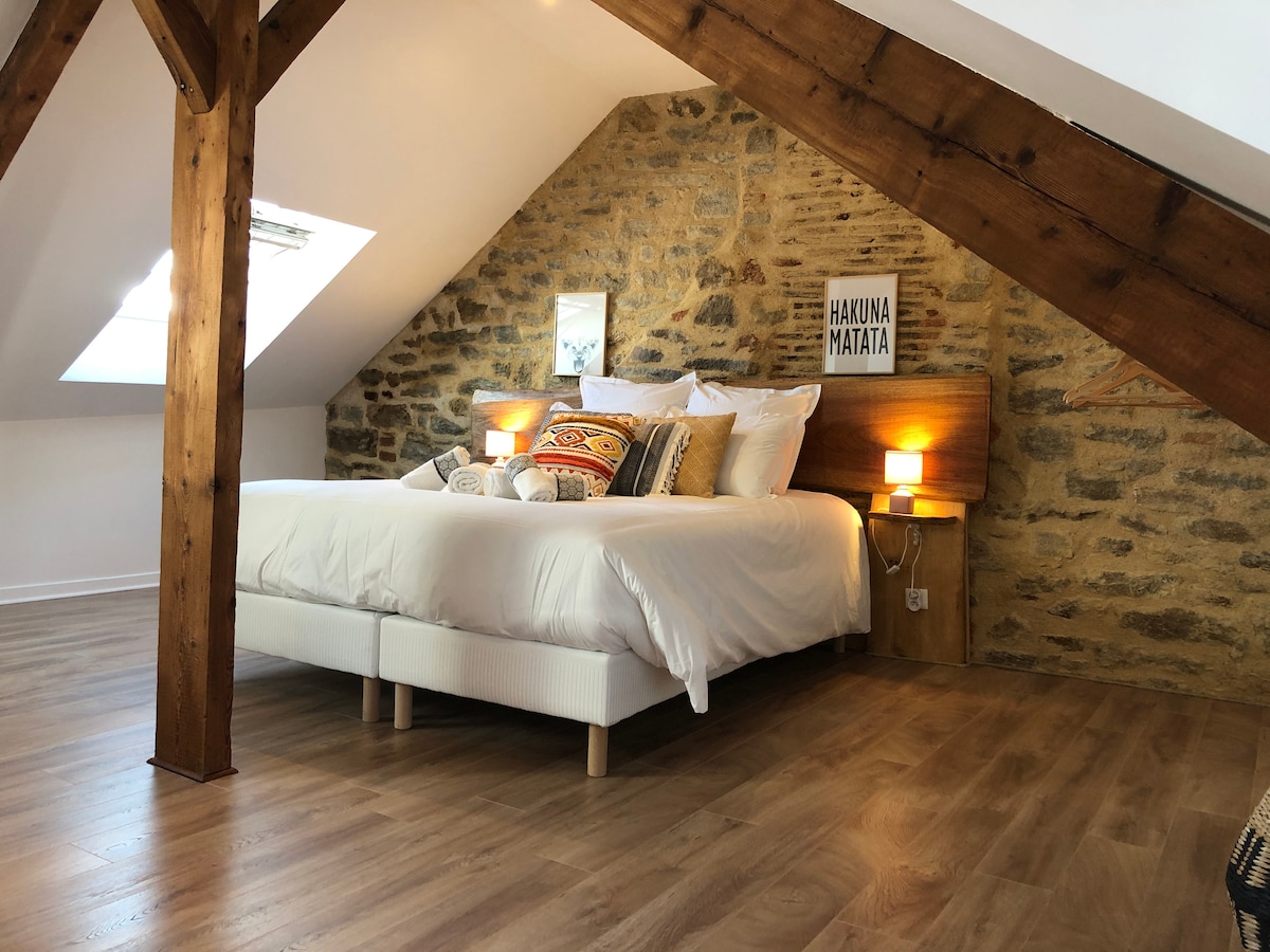 Renin hipercenterunda loft. Şəhərin mərkəzində yerləşir, hər şeyi ayaq üstə etmək olar! Rue Saint-Hélier-dəki sənətkar mağazalarından 2 dəqiqə, qatar stansiyasından 3 dəqiqə, Les Hallesdən 5 dəqiqə, Renndən bar və restoranlar. Gözəl tavan hündürlüyü olan, zövqlə təchiz edilmiş loft, böyük yarım səviyyəli yaşayış məkanı. Mətbəxi yeni avadanlıqlarla təchiz edib. Hamamı olan böyük hamam otağı. İki nəfərlik çarpayısı olan, masası olan 2 geniş yataq otağı.