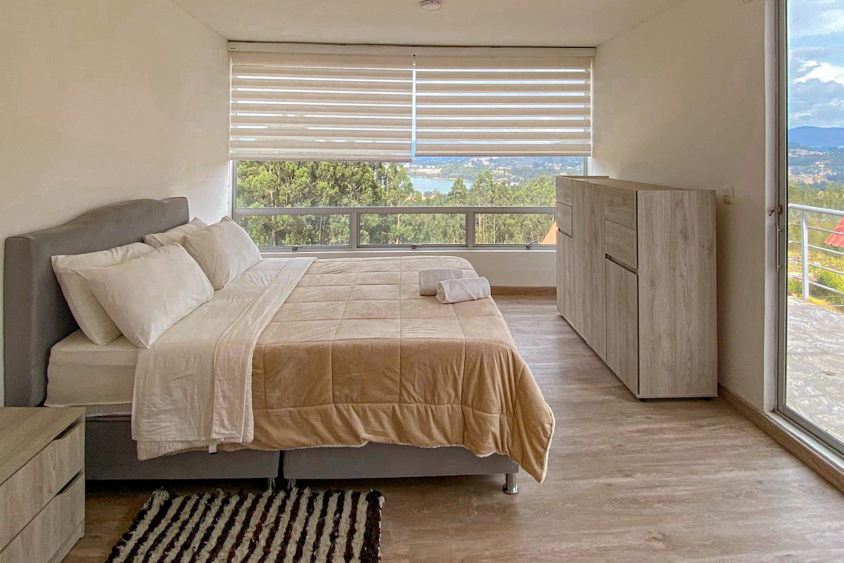 Exclusivo apartamento a orillas del lago Sochagota,podrás disfrutar de un espacio de lujo completamente nuevo,pensando en el bienestar y tranquilidad de nuestros huéspedes, con detalles locales y amenidades tecnológicas, como: cerradura y parlante inteligente , lámpara y televisor con asistente de voz, calefactor, y un bello balcón con vista lateral al lago. Encontrarás descanso, lujo y contacto con la naturaleza, todo en un solo lugar.