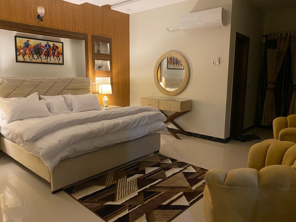 İslamabadın Bahriya Şəhərində Öz-Özünə Giriş, Pulsuz Parklanma, Sürətli Wi-Fi və Netflix TV ilə Müasir, Rahat və Lüks qonaqlama. Kral çarpayısı, Baxış və Oturacaqları, Mətbəx (Soyuducu/Dondurucu, Mikrodalğalı soba və Elektrikli Çaydan) və yığılmış Hamam Otağı olan Ayrıca Balkondan zövq alın. Səhər yeməyi və Otaq Xidməti sorğu və ödənişlərə əsasən mövcuddur. Daxili kafe və restoran mövcuddur. Parkların, ticarət mərkəzlərinin və restoranların yaxınlığında, DHA2 və Giga Mall-dan cəmi 12-15 dəqiqəlik məsafədə və hava limanından 1 saatdan az məsafədə əsas yer.
