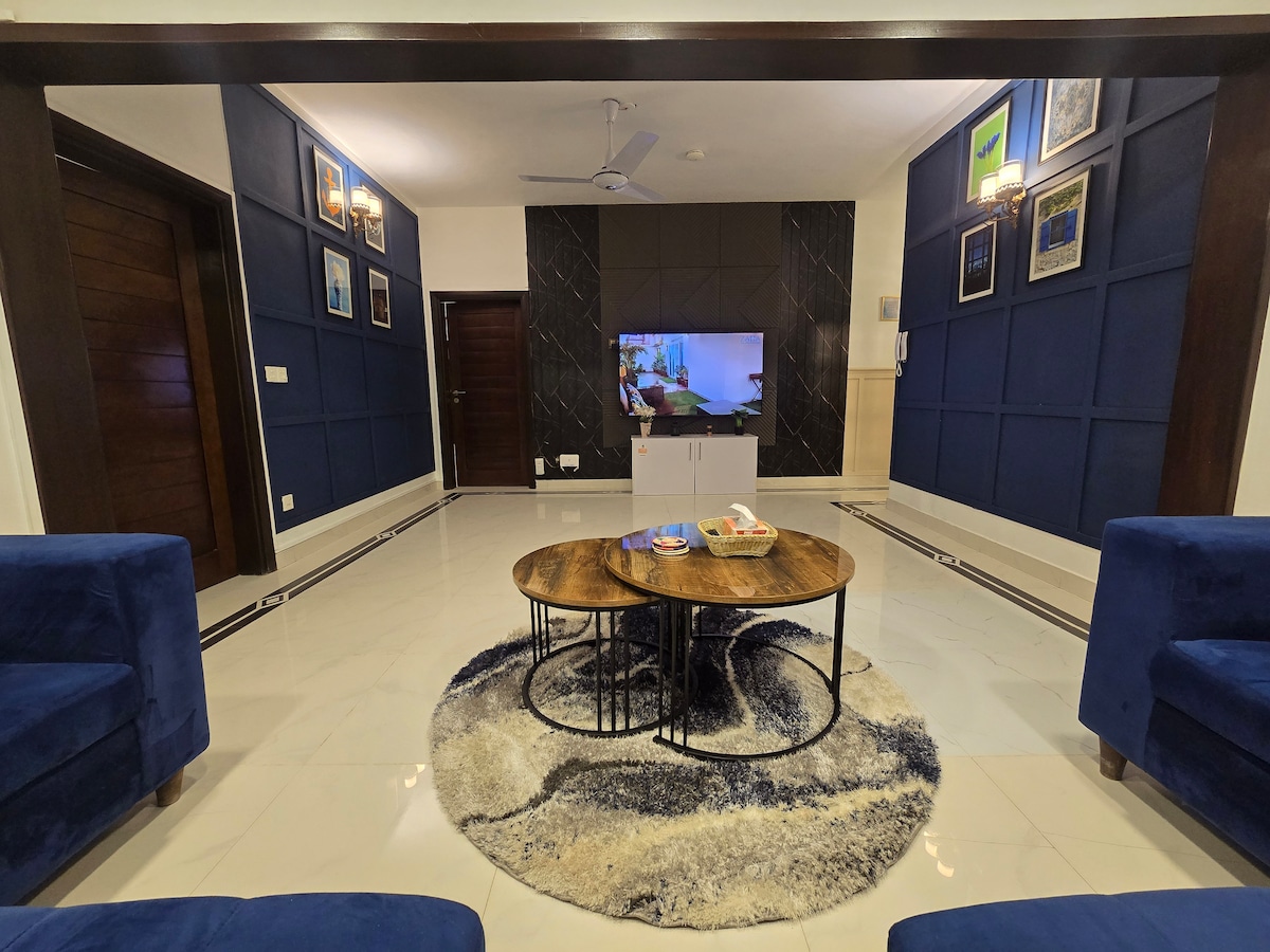 Welcome to our exquisite newly built residence, perfect for families, set in a tranquil and prestigious neighborhood. • Luxuriously appointed with modern fixtures, top-tier amenities, 8 en-suite bedrooms, 3 lounges, and exclusive rooftop. • 24/7 dedicated staff and full-load automatic power backup to ensure your utmost comfort. • Entire property bookings only; no room bookings. • Instantly book or contact me for any inquiries. • Book with peace of mind! Enjoy the freedom to cancel for free.