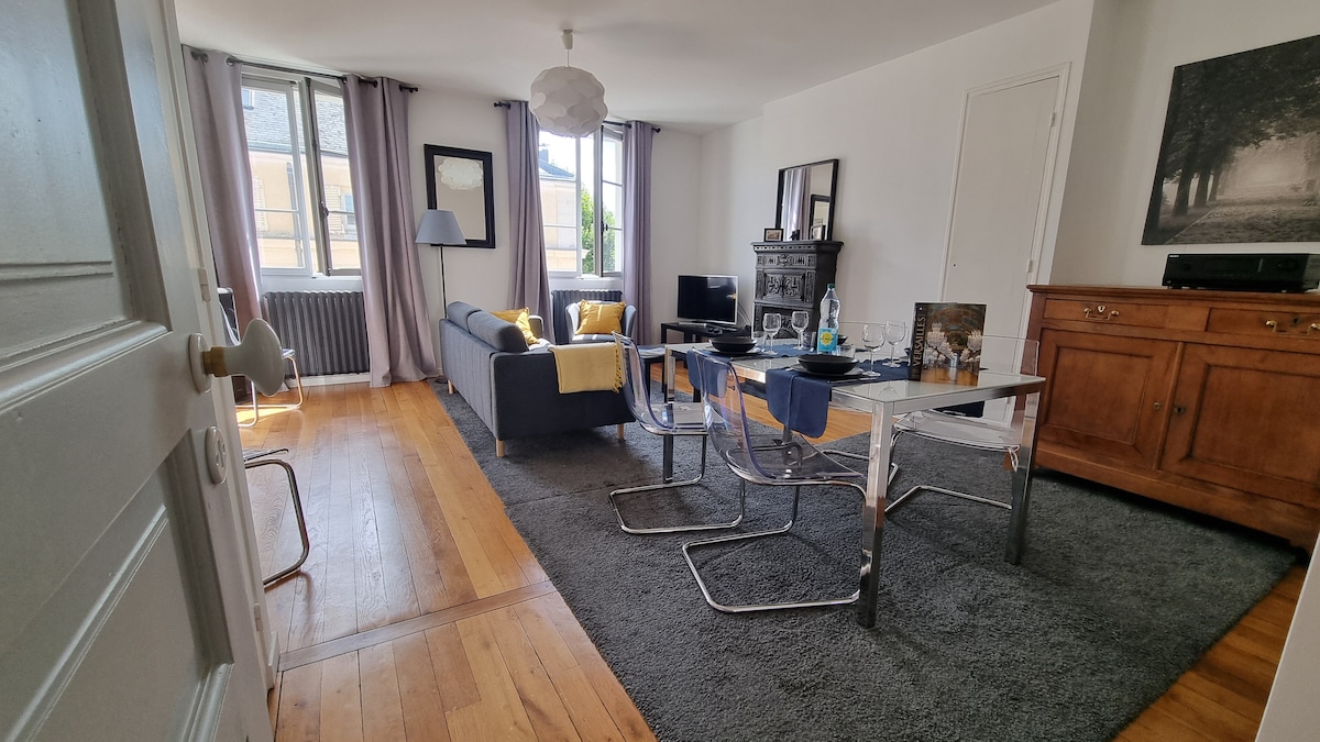 Qəşəng və zərif dekorasiyası olan 100 kvadratmetrlik mənzil. 5 (maksimum) şəxsin ailə səfəri üçün idealdır. Sakit və mərkəzi mövqeyi kral şəhərinin ziyarətini və Parisə səfər etmək üçün sürətli günlük səfərləri birləşdirməyə imkan verir -------------------- Ağıllı dekorasiyalı, sahəsi 100 m2 olan mənzil. 5 nəfərə qədər ailə qonaqlaması üçün idealdır. Şəhərdəki çox mərkəzi mövqeyinə və Parisə xidmət edən 3 stansiyası olduğuna görə mənzil kral şəhərində qonaqlamanı birləşdirməyə və Parisə səfər etməyə imkan verir.