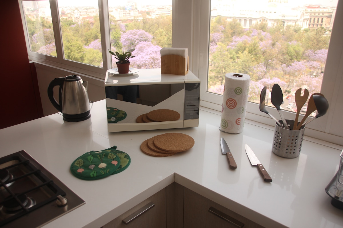 CDMX-nin mərkəzində yerləşən bina 100% təhlükəsizdir Şəhərin Zócalo şəhərindən 1.3 km məsafədə, Təsviri İncəsənət və Mərkəzi Alameda küçəsindən bir çox muzey və tarixi məkanlarla əhatə olunmuşdur. İstəsəniz, kral ölçüsünə çevrilə biləcəyimiz 2 tək çarpayı, əla sürət, tam təchiz olunmuş mətbəx, tam təchiz olunmuş mətbəx, kabel televiziyası da var.