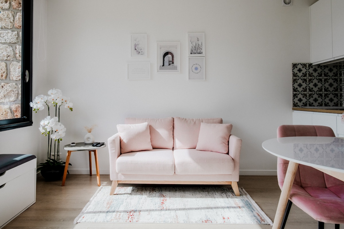 Düşünülmüş dekorasiyası olan bu müasir və rahat 34m2 studiyada 🌼 dincəlin. 😍 Parisdən 20 dəqiqəlik məsafədə yerləşir: Massy TGV və RER B&C Massy-Palaiseau stansiyalarından 1 dəqiqəlik məsafədə Sorğu əsasında Hava Limanı/Stansiya ⚜️ Transferi Kotirovkası ▶️ Son, təhlükəsiz və tam təchiz olunmuş Fiber ▶️ Wi-Fi, Smart TV 43" Netflix Tətbiqi* ▶️ Dəsmallar və yataq dəstləri təmin edilir ▶️ Öz-özünə giriş/çıxış ▶️ Pulsuz çay, qəhvə və çərəzlər Zərif ⚜️ və isti atmosferi olan gözəl mənzilimin qapısını itələyin. 🌻