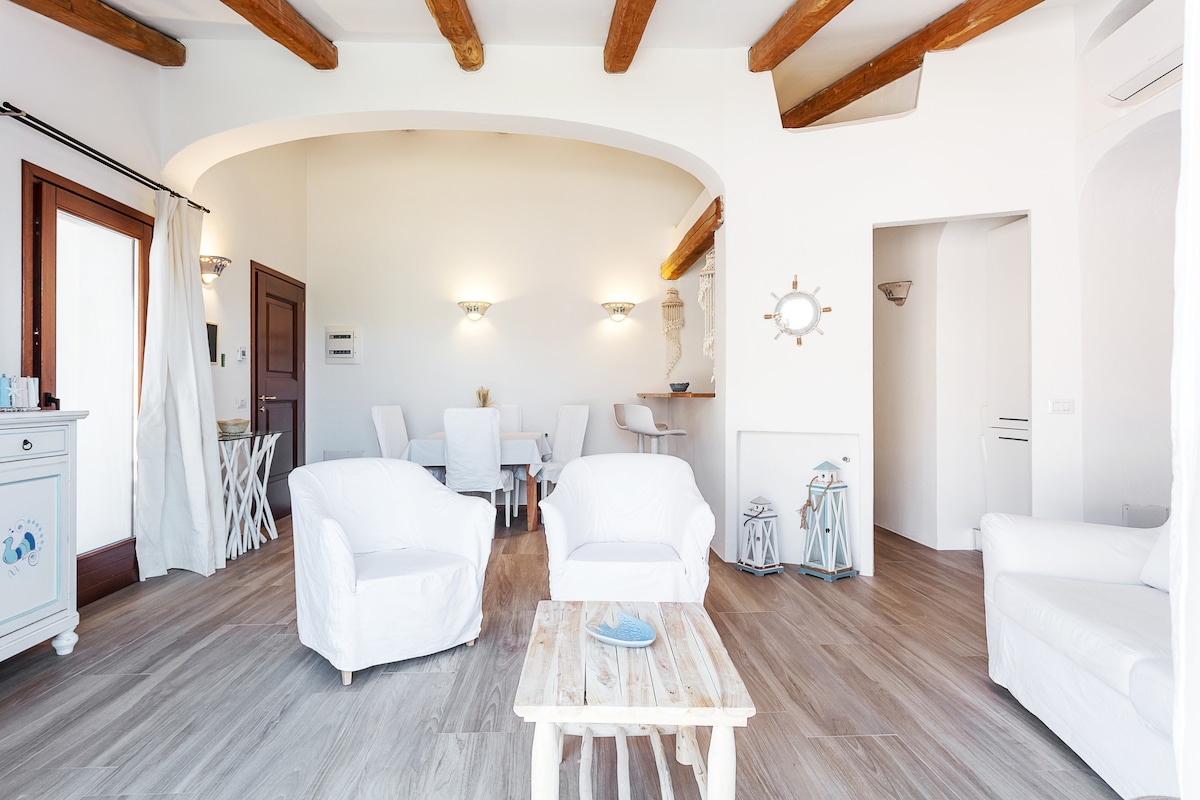 Strateji mövqedə yerləşən məkan, heç nədən imtina etməli olmayacaqsınız. Böyük üçotaqlı mənzil, panoramik terras: 2 yataq otağı (1 nəfərlik və 1 kraliça ölçüsü) və kiçik terras; mətbəx, pəncərə və limana və Maddalena arxipelaqına baxan yaşayış terrası olan rahat qonaq otağı, duş və ikiqat çanağı olan hamam otağı. Kondisioner. Mənzil sakit ərazidə və mərkəzdə bütün xidmətləri, Milli Park üçün qayıq icarəsi, Maddalena adasına bərə ilə yerləşir.