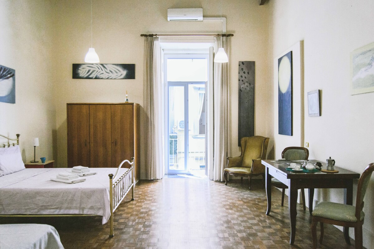 Amedeo meydanından (Metro L2, Funikulyor, Taksi Stansiyası) cəmi 3 dəqiqəlik məsafədə yerləşən mənzil 5 nəfərə qədər qonağa ev sahibliyi edə və zərif Çiaia rayonunun mərkəzində rahat qonaqlama üçün bütün komfortları təmin edə bilər. Əsas məkanlar bunlardır: vanna otaqları ilə təchiz edilmiş iki rahat yataq otağı, divan çarpayısı olan geniş oturma otağı və əl ilə işlənmiş balaca mətbəxi olan işıqlı yemək sahəsi. İnteryerdə 1909-cu ildən etibarən Azadlıq üslubunda taxta qapılar və çərçivələr var, müasir imkanlarla rustik zərifliyi ahəngdar şəkildə balanslaşdırır.