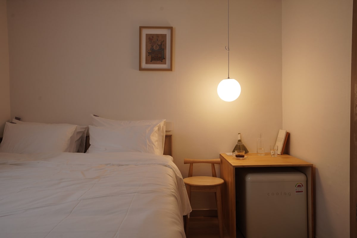 Stay105 Haenggung - Tək səyahətçilər üçün emosional tək otaq Bu yaşayış yeri münasib qiymətə müstəqil qonaqlama üçün nəzərdə tutulub. Otel səviyyəli tam xidmət gözləyənlərdən fərqli olaraq Təmiz və sakit qonaqlama istəyənlər üçün uyğundur. Bu məkan tək səyahət edən və özünə vaxt ayırmaq istəyənlər üçündür. Stay105 Haenggung-un tək otağında sakit və səmimi atmosfer var, Yorucu gündəlik həyatdan uzaqlaşmağa və sizə diqqət yetirməyə imkan yaradırıq. - Otaq konfiqurasiyası Rahat tək çarpayı və otel səviyyəli ağ yataq dəsti Divara quraşdırılmış TV, kondisioner ilə təchiz olunub İsti işıqlandırma və taxta tonlu interyeri olan sabit məkan Baqajın sadə saxlanılması üçün praktik quruluş - Bunu bu cür insanlara tövsiyə edirəm Təkbaşına səyahətdən zövq almaq istəyənlər Sakitcə kitab oxumaq və ya düşüncələrini təşkil etmək istəyənlər İşgüzar səfərdə olan, lakin emosional məkanda qalmaq istəyənlər Haenggungda birnəfərlik otaqda Stay105 Vaxtınızı və emosiyalarınızı rahatlıqla doldurun.