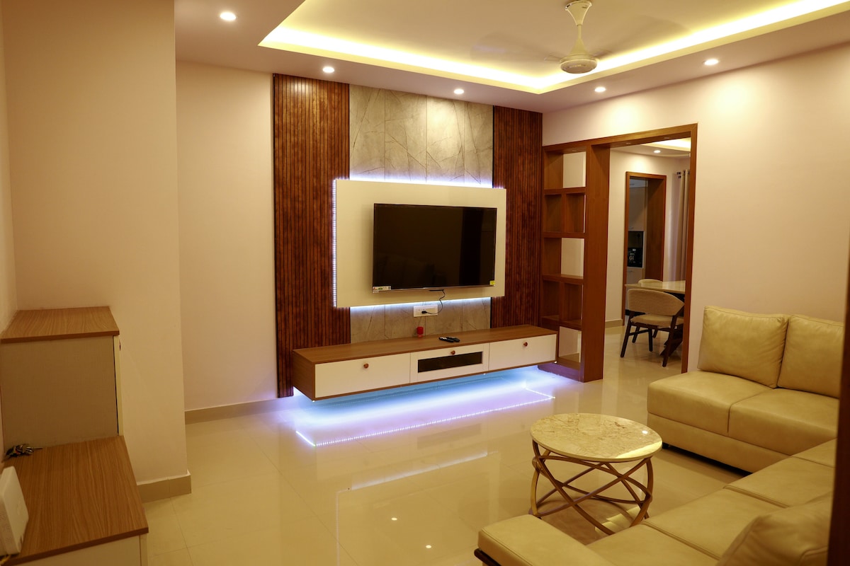 Welcome to Lapis - 3BHK Homestay at 7Elysee Homestay - the Best-Rated & Most Awared Homestay in Thrissur! Because it is designed as a Home Stay. Only Homestay in Thrissur with 100% powerback incl. ACs. 3BHK - Spacious 2,200 Sqft fully air-conditioned, offers high-speed Wi-Fi broadband. Guests appreciate our meticulously clean, quiet, and well-appointed apartments.Bring the whole family to this great place with lots of room for fun.