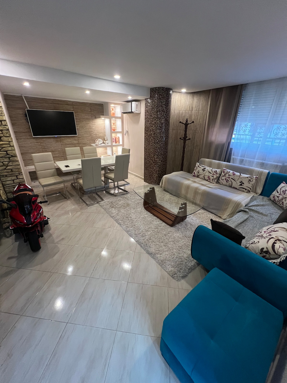 Təhlükəsiz yaşayış yerində yüksək standartlı kondisionerli lüks 2 lüks otaq. Bütün şəraiti təklif edən yeni mənzil. Lift, park və bağı olan ayrıca parkinq yeri. Çimərliyə və ictimai nəqliyyata yaxın, Şeratondan 15 dəqiqə və şəhər mərkəzindən 2 addım məsafədə. Tam təchiz olunmuş mətbəx (soba, mikrodalğalı soba, soba, qabyuyan maşın, paltaryuyan maşın və məişət texnikası ... ) Duş otağı, isidilmiş döşəmə və mini "Hammam". İki nəfərlik çarpayı, televizor və rahat işıqları olan rahat otaq.