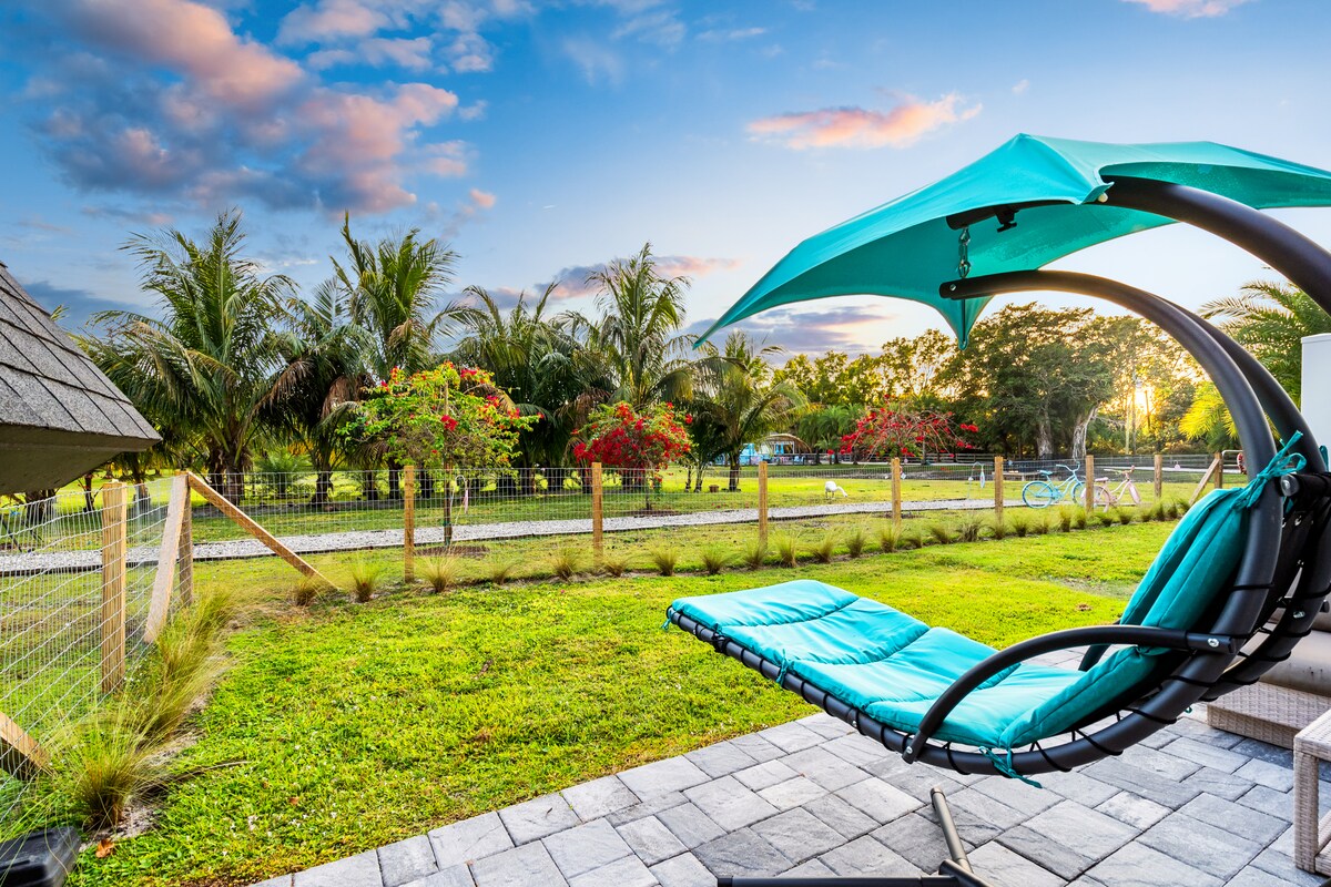 Welcome to The Modern Farm Experience - a private, dog-friendly retreat in the heart of Loxahatchee, FL, where nature, space, and freedom come together. Let your dogs roam safely on a full private 1.5 acres, and enjoy your morning coffee while strolling the food forest to gather fresh, exotic fruits for breakfast. This is a place where dogs can truly be dogs - running, exploring, and relaxing beside you in a peaceful, natural setting. The beach is only a 30 minute drive.