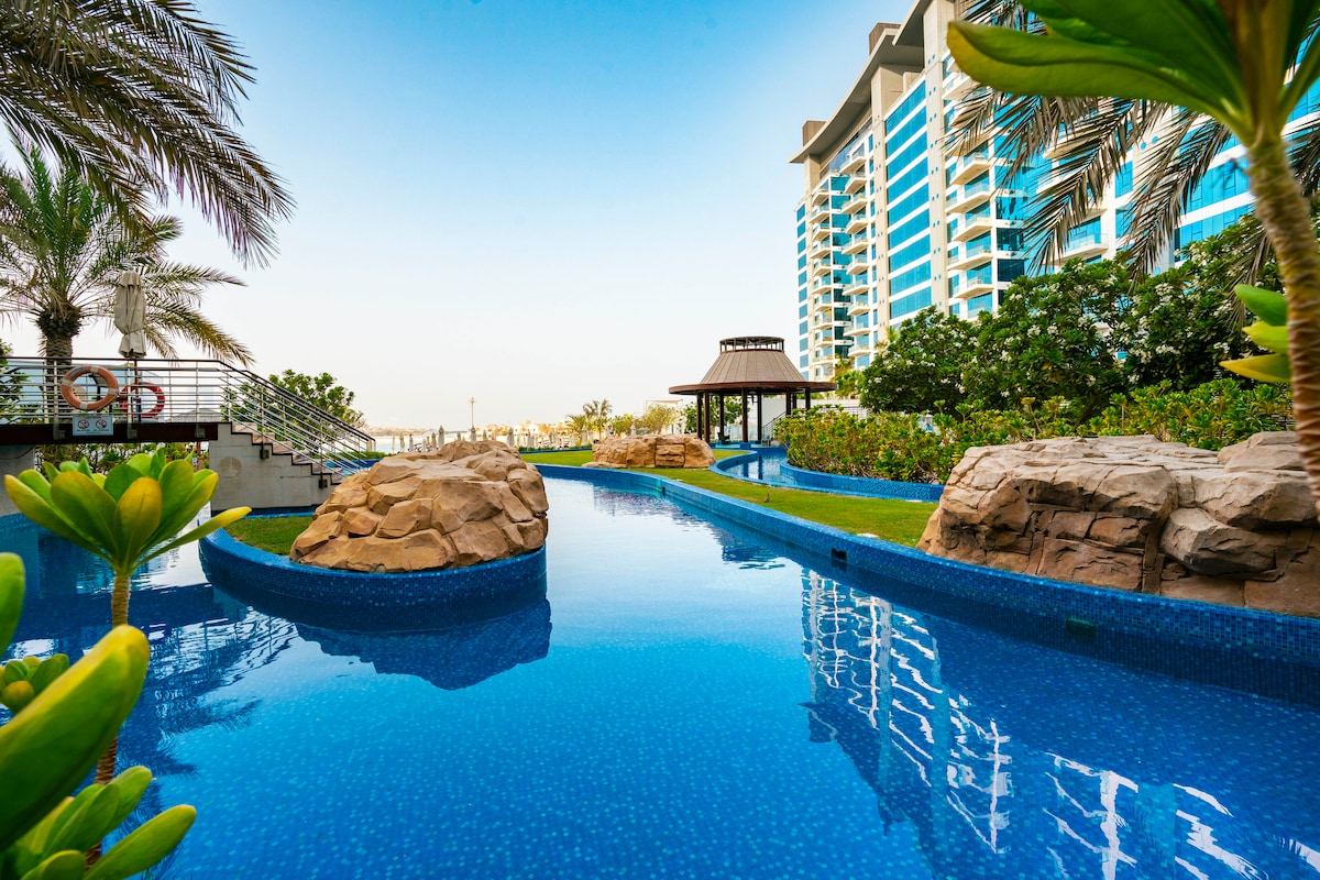 Nəfəsalma 1BR Sea-View Palm Apt | Çimərlik və Hovuz