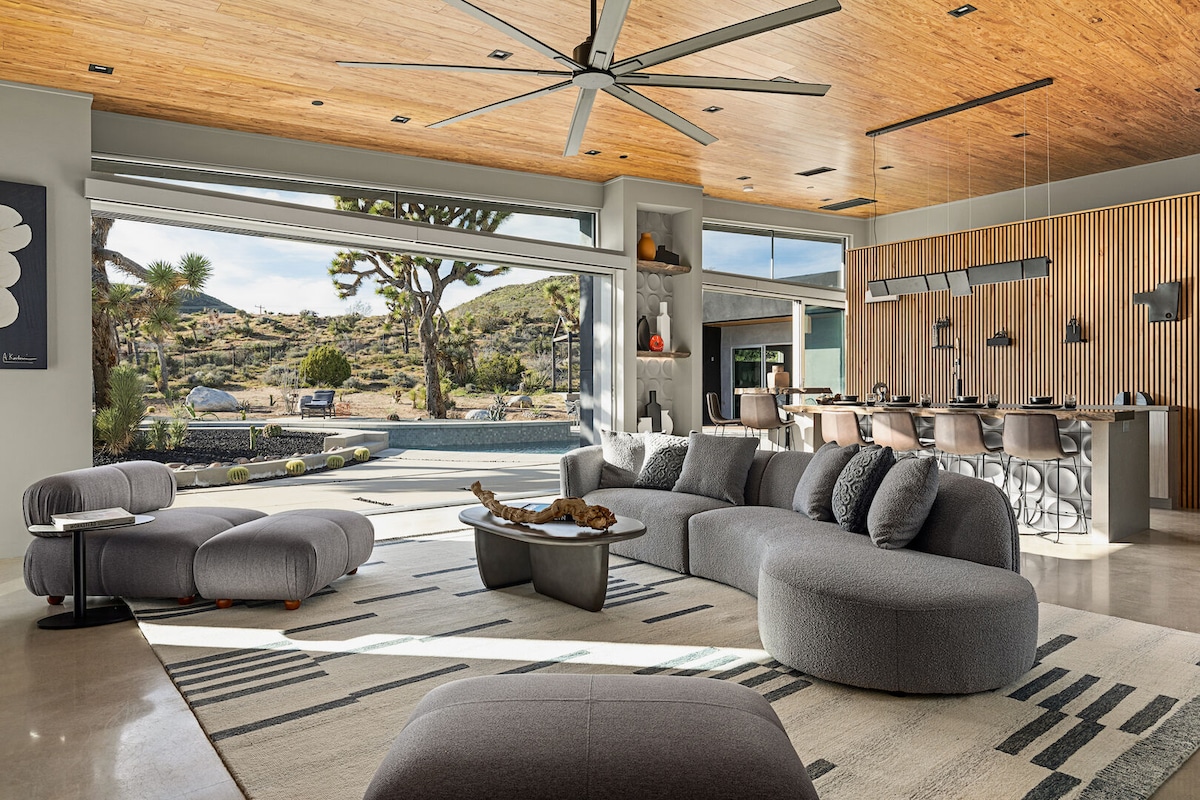 Welcome to Prism By The Cohost Company ~ a once-in-a-lifetime Joshua Tree desert experience. Drive up to the top of the hill to the home nestled in-between the boulders. Explore nature within your own backyard with starry night skies, personal hiking trails, desert views and the surrounding wildlife. Dip into the above-ground pool, soak in the hot tub and cozy up next to a firepit.