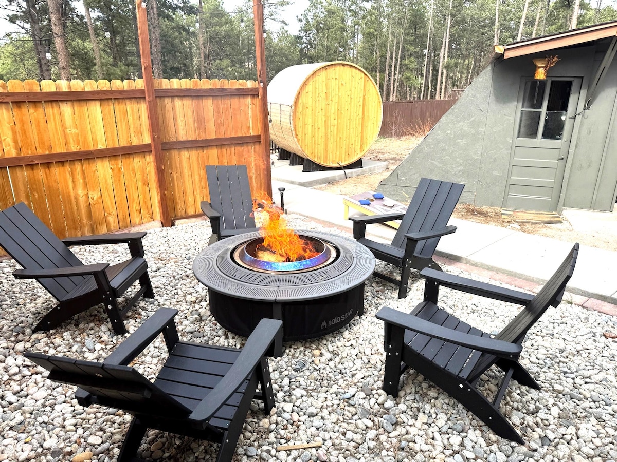 Palmer Divide-də yerləşən, Kolorado-Sprinqlə cəmi 15 dəqiqə və Cənubi Denverlə 30 dəqiqə məsafədə yerləşən bu xüsusi tikilmiş Skandinaviya üslubunda A formalı evdə əsl Kolorado tətilini yaşayın. Şam ağacları arasında möhtəşəm mənzərələrə baxaraq özünüzü təcrid olunmuş hiss edəcəksiniz. Cakuzidə və ya paltoda bir fincan qəhvədən və ya bir qədəh şərabdan zövq alırken vəhşi təbiətin yanınızdan keçdiyini görə bilərsiniz. İlk şərab şüşəsi bizdən! Piyada gəzinti cığırları kabinədən avtomobillə bir neçə dəqiqəlik məsafədədir. Rahatlayın və çoxlu xatirələr yaradın. 😊
