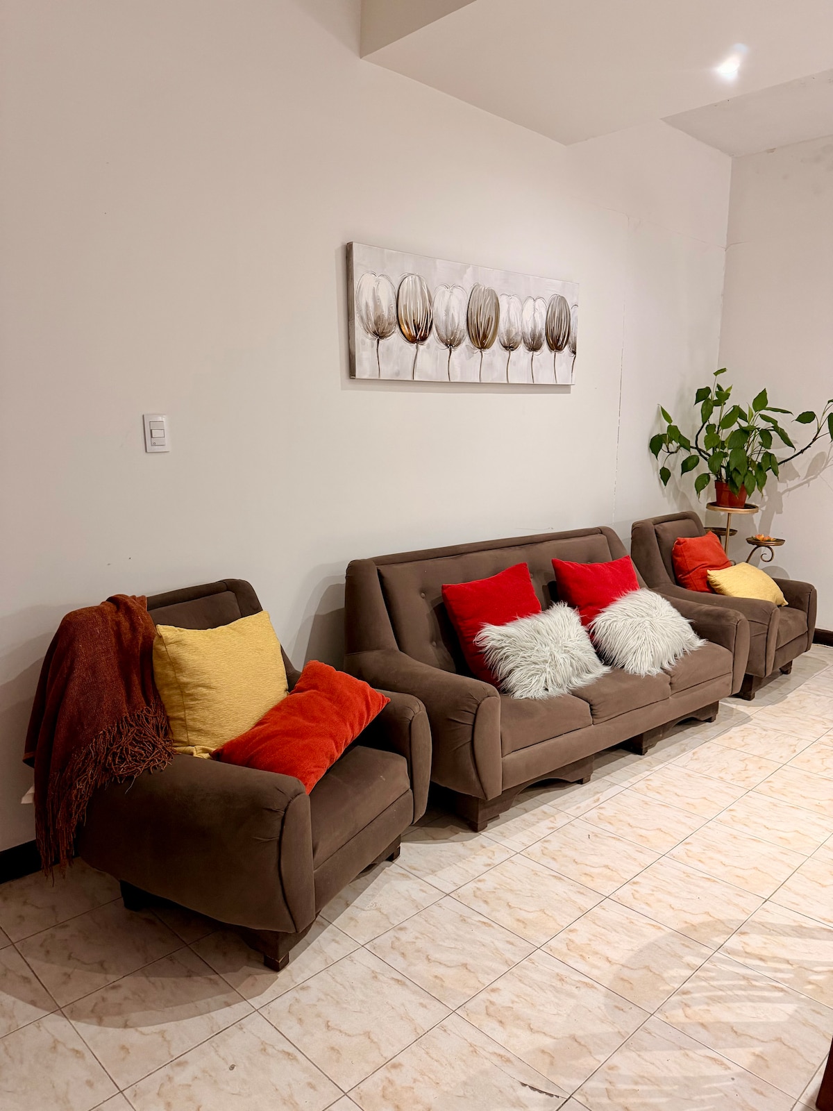 La Casita 859 is a bright and peaceful home surrounded by greenery, 🌱 just 10 minutes by car from downtown Jujuy. 🏔️ It offers 1 bedroom 🛏️ , sofa bed, two cozy living areas 🛋, a fully equipped kitchen 🍽️ , spacious dining room 🍴 , patio with BBQ (parrilla)🍗 , hammock and private parking 🚘 . WiFi, AC, heating, Smart TV with Netflix and washing machine included. 🚗 10 min from downtown / Ciudad Cultural, ✈️ 15 min from Jujuy Airport and close to top attractions.