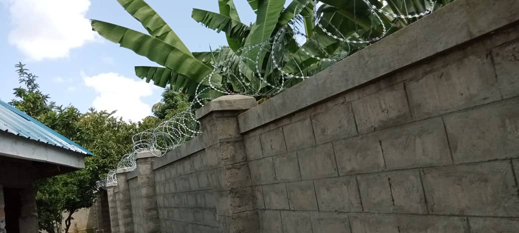 The house has green ironsheets with tall fence with razer wire plus gate painted with bitonut pain.
