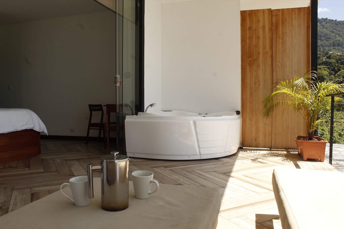 Kənd üslubunda lüks + valehedici təbiət gözəlliyi. Tropik bitkilər və meyvə ağacları bu həqiqətən unikal villanı əhatə edir. Villadan şəxsi üzgüçülük buxtasına baxırsınız, burada 21 metrlik qayalar təmiz suya qərq olur və möhtəşəm vulkan mənzərələrini əhatə edir. Saunada buxarlayın, SUP-ları/kayakları idarə edin, açıq havada vannada islanın və ya kərpicdən toxunmuş pizza piknik edin. Açıq havada günəşləmək, dincəlmək, açıq havada yemək yemək və möhtəşəm mənzərələrdən zövq almaq üçün çoxlu açıq hava məkanları var. Atitlan gölünün ən gözəl mənzərələrindən zövq alın. Şəxsi aşpaz mövcuddur.