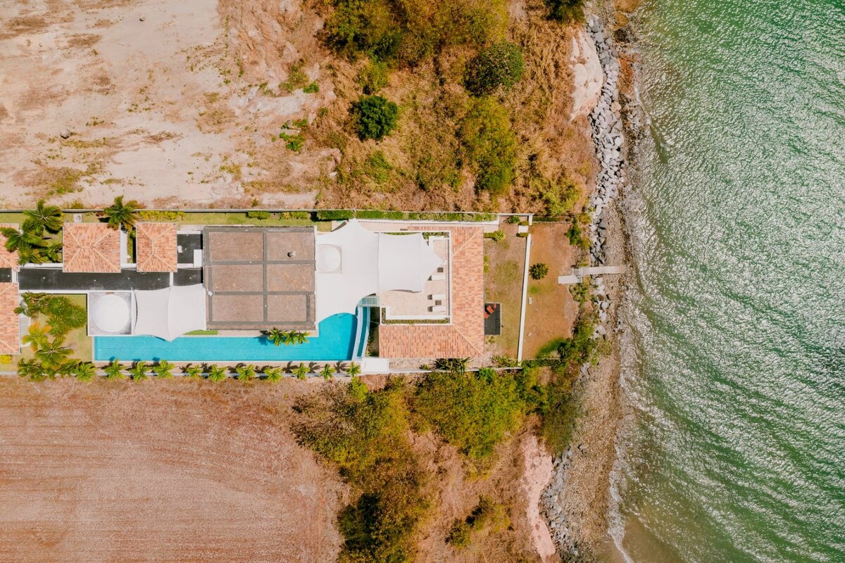 Relax in this spacious beachfront villa with a private pool, rooftop terrace, and palm-lined path straight to the beach. Perfect for families, groups, or special events — whether you’re sharing BBQ nights, watching sunsets on the rooftop, or simply soaking up the tropical atmosphere. Just 2 hours from Panama City and right in front of the beach! • Beachfront Villa with Direct Access • Private Pool + Palm Garden • Rooftop with 360° Sunset Views • Fast Wi-Fi & Dedicated Workspace