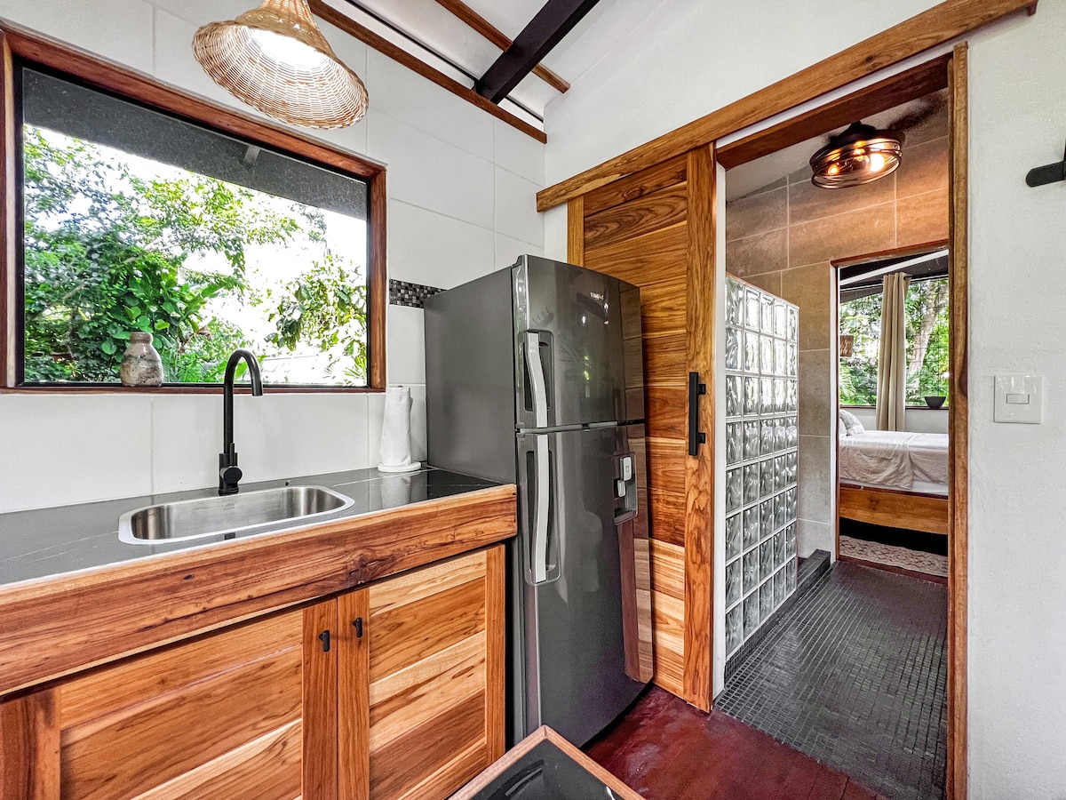 Sevgi adasında inşa edilmiş bu məqsəd tropik bağlarda, Milli Parkın girişindən, kənd mərkəzindən və Kosta-Rikanın ən gözəl çimərliklərindən bəzilərindən bir neçə dəqiqəlik məsafədə yerləşir. Bu stenddə studiya vahidində A/C, öz şəxsi hovuzu, xüsusi iş yeri və rəqəmsal köçərilər üçün 25mb Wi-Fi sürəti, tam təchiz olunmuş müasir mətbəx, dəbli vanna otağı dəsti və yol kənarında xüsusi parkinq var. Öz dəbdəbəli dip hovuzunuzda dincələrkən sloths, touchans və Howler meymunlarını izləyin!