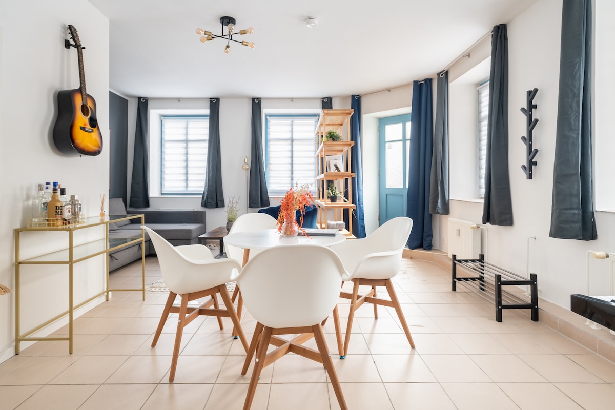 Escape to a stylish 135 sqm tri-level apartment between Mitte & Prenzlauer Berg. Perfect for families or groups, this urban retreat features 2 bedrooms, a private fitness room, and a dedicated workspace. Enjoy serene courtyard views just a 10-min walk from Rosenthaler Platz. A unique blend of luxury and tranquility in the heart of Berlin.