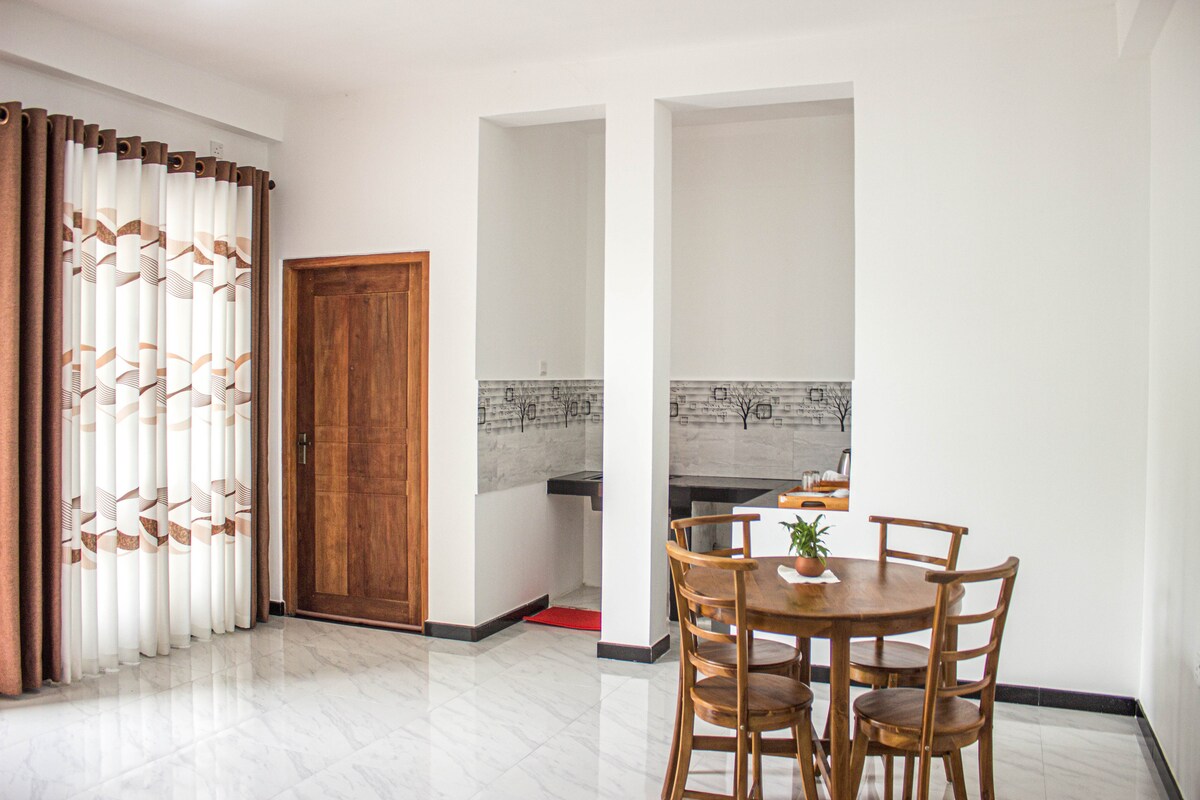 Hava limanından cəmi 15 dəqiqəlik məsafədə yerləşən, gözəl memarlıq dizaynlı bu evdə butik üslublu lüks təcrübə yaşayın. Dəbdəbəli iki yataq otağı, müasir rahat oturacaqları olan zərif qonaq otağı, yemək sahəsi, mətbəx, müasir hamam və dinc bağçadan zövq alın. Sakit ərazidə, lakin Neqombo şəhərinə, çimərliyə, restoranlara və alış-veriş yerlərinə cəmi 5 dəqiqəlik məsafədə. Wi-Fi və kondisioneri olan bu geniş mənzil rahatlıq, məxfilik, rahatlıq və həqiqətən rahat qonaqlama axtaran cütlüklər, dostlar və ya tək səyahətçilər üçün idealdır.