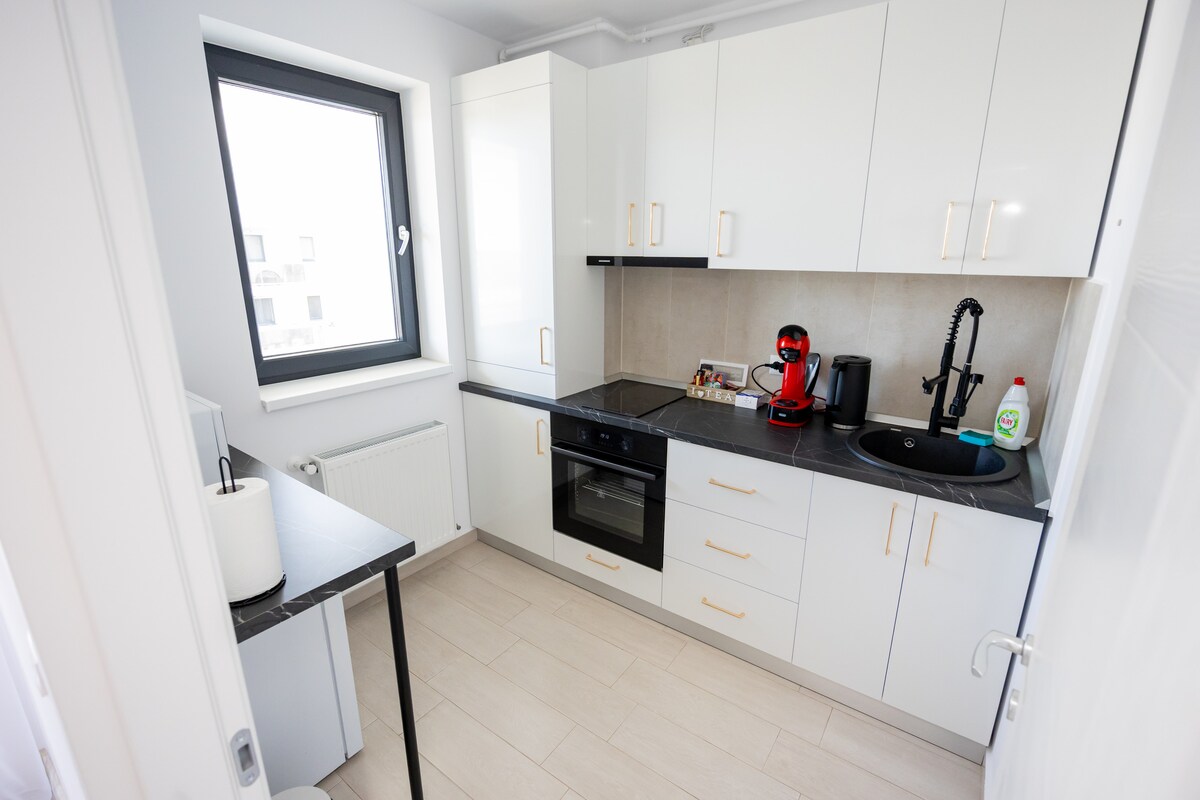 Yeni kompleksdə bu geniş iki otaq və terras mənzilindən zövq alın. Buxarestin canlı şəhər mərkəzinə və Köhnə Şəhərə yalnız qısa 15 dəqiqəlik metro gəzintisi. - DivanÇarpayı + - Böyük ayrıca terras - Uşaqlar üçün oyun sahəsi - Paltaryuyan maşın və başlıqlı quruducu - Super Səhər Yeməyi Wi-Fi - Netflix ilə ağıllı televizor - Ağıllı Mərkəzi İstilik - BÜTÜN otaqlarda kondisioner sistemi - Təhlükəsiz yeraltı parkinq - Yüksək təhlükəsiz qapalı bina kompleksi. Airbnb-də yeni deyilik. Andreyin Birləşmiş Krallıqda qonaqları qarşılamaq haqqında 90+ rəyinə nəzər salın 🇬🇧