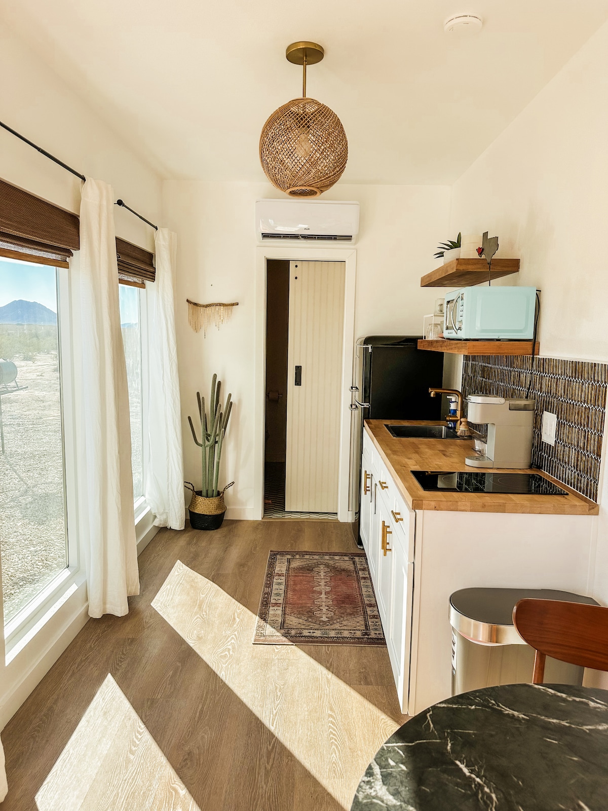 ❄️ NEW 2-ton mini split AC keeps it under 70°F even on the hottest days 🧊 👽 Gaze at stars through the 180° panoramic window or from your luxury queen bed while the Pod's lights, effects, and hidden aliens create a sensation of soaring through the galaxy 🛸 🏜️ Stunning View: Perched atop a scenic volcanic hill, our Space Pod offers a mesmerizing setting just 10 minutes from Big Bend entrance, Terlingua Ghost Town and its vibrant shops 🚀 IG: @spacecowboystx