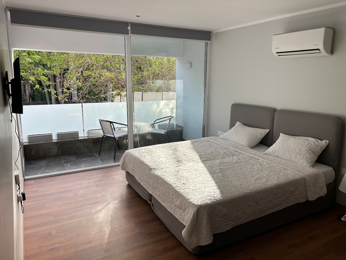 Studio with patio. for 2 persons. size of the room 27 square meters included furnitures & 7 square meters patio. Double bed. Full renovated. Hairdryer _ wifi free internet access _ T.v (flat screen .43 inches). big fridge _ washing machine. ceramic electric cooker coffee machine ....... very strong Aircontition or heater _ ceiling fan _ spoons, knifes,plates are also available