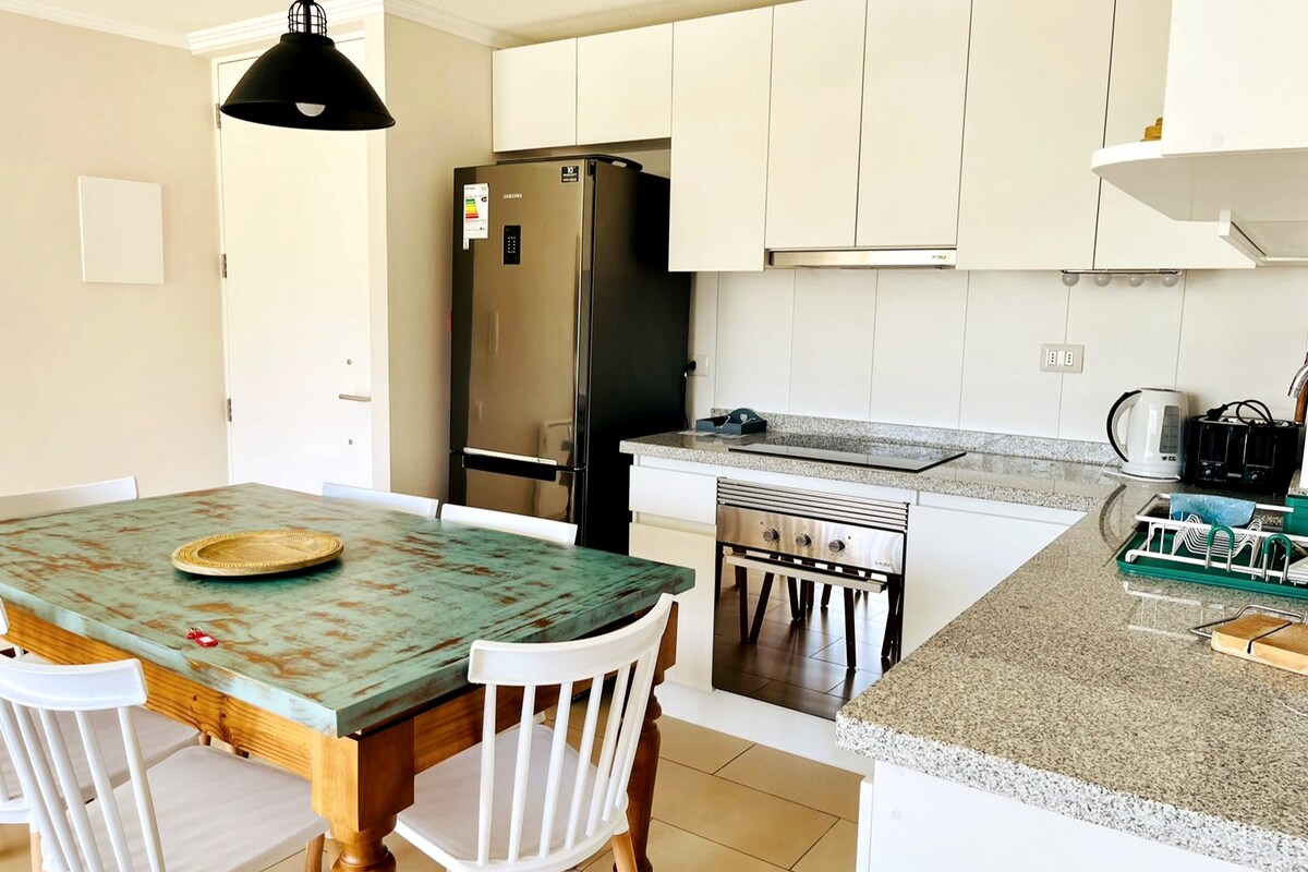 Eyni çimərlikdə tikilmiş, Playa El Caleuche-yə birbaşa çıxışı olan binada mənzil. Mənzilinizdən lift almaqdan və restoran tapacağınız eyni çimərliyi tapmaqdan zövq alın. Gözəl günəş doğan qayıqları və qayıqları seyr etmək üçün ön xəttdəki körfəzin gözəl mənzərəsi. Maksimum 7 nəfər yatır. 3 yataq otağı. İstilik sistemi. Parkinq və ikinci parkinq imkanı. Okean sahili asado üçün balkonda üyüdün.