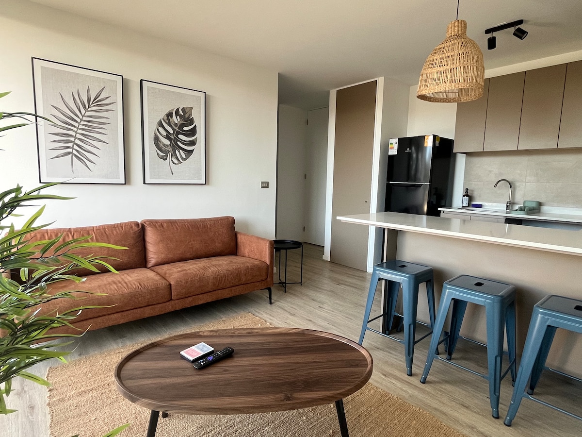New and central condo apartment 1 block from the beach and plaza, where the best bars, restaurants, cafes and stores in Papudo are located. Ideal for families, couples and friends who want to stay in a comfortable, safe place, with 2 swimming pools, barbecue areas, a relaxation room with various amenities. All spaces have access for people with reduced mobility. Located in a strategic and privileged location steps from the beach, yacht club and fishermen's cove.