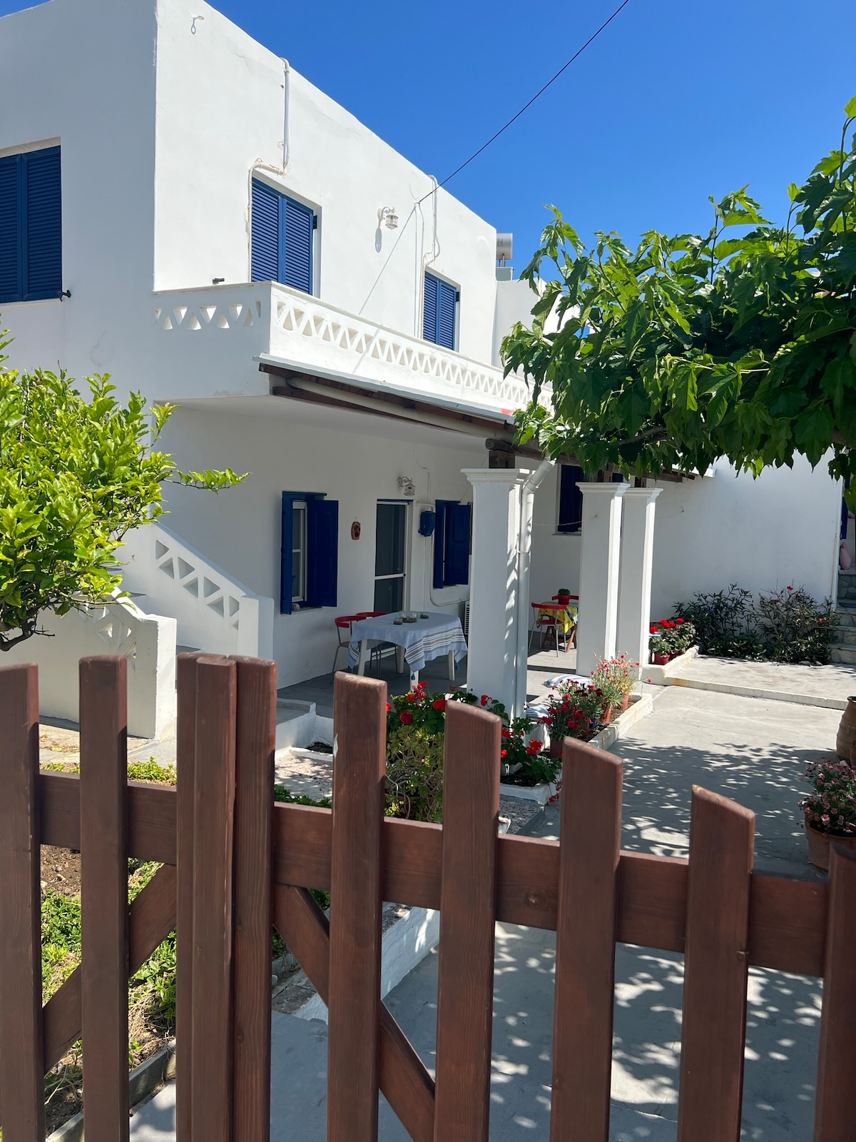 Tarixi illərdən qalmış, qədim Skayros şəhərinin ən sakit və mənzərəli hissəsi olan Qəsr altındakı Çora qayalarında yerləşir. Egey dənizinin sonsuz üfüqünün qarşısında günəşi və ayı seyr etmək, dənizdən doğan günəşi və ayı seyr etmək. Ev istirahət etmək və unudulmaz qonaqlamadan zövq almaq üçün bütün komfortları təmin edir.