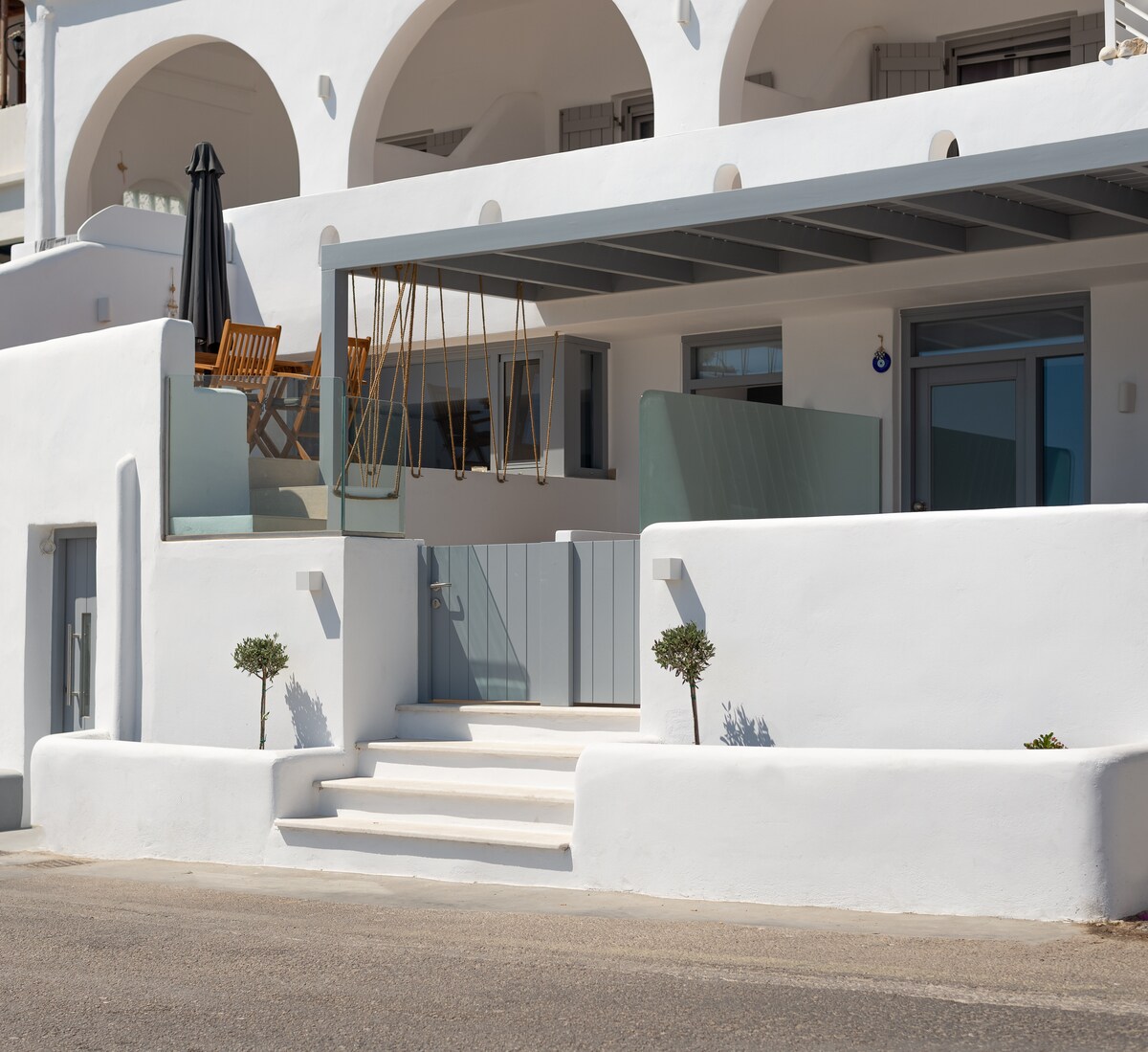 Our rooms are situated in a beautiful part of Paros, called Logaras. In the neighborhood you will find family beach bars, cafes, taverns, restaurants, bakeries, an ATM as well as a supermarket. The beach is right outside our premises once you cross a small country road. All our rooms are created with love and detail. Everything is thought out to make your vacation experience one of a kind. Each morning you will wake up, step out onto the balcony and marvel at the beautiful Aegean Sea.