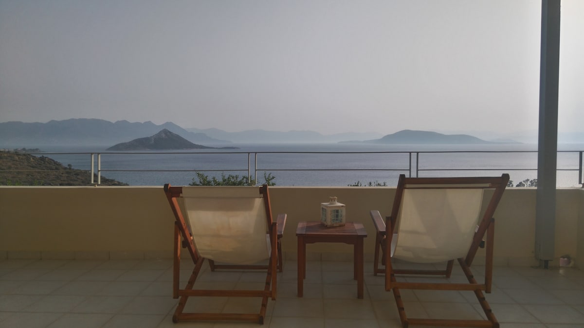 Mənzil Egin limanından 1,5 km məsafədə yerləşir. Gözəl mənzərəsi və böyük terrası onu unikal edir. Qonaqlar heyrətamiz gün batımından və Saronik körfəzinin möhtəşəm mənzərəsindən zövq ala bilər.