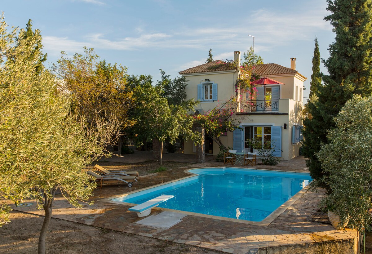 Əmlak əsas evdən və müstəqil qonaq evindən, ayrıca hovuzu və heyrətamiz dəniz mənzərəsi olan 2.000 kvadrat metrlik ərazidə yerləşir. Dənizdən cəmi 500 m, Aeginas şəhəri və limanından isə üç km məsafədə yerləşir.