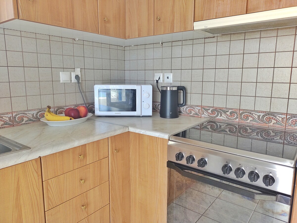 Mənzil Paroikiyanın düz mərkəzində, köhnə bazar küçəsinin içərisində yerləşir və sizə demək olar ki, hər yerə getmək imkanı verir. Liman mənzildən piyada 4-5 dəqiqəlik məsafədədir, buna görə də burada parkinq sahəsi, avtobus stansiyası, çoxsaylı mağazalar, qəhvə dükanları, barlar, un məmulatları mağazaları və ərzaq alış-verişiniz üçün supermarketlər var. Nəhayət, bir neçə dəqiqə gəzərək üç fərqli çimərliyə də baş çəkə bilərsiniz.
