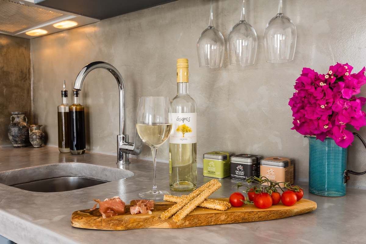 Bu xəyal evi Naxos Venesiya qəsrinin girişindən bir az yuxarıda yerləşir. İdeal tətil şəraitini təmin etmək üçün orta əsrlərə aid bu şato müasir lüks toxunuşlarla dəyişdirilib. Cakuzi, premium döşəklər və Egey dənizinə baxan günəş vannaları qaçırmaq istəmədiyiniz təamdır. Həm şəhəri, həm də adanı kəşf etmək üçün ideal bir yerdə yerləşən yerli görməli yerləri və gizli inciləri asanlıqla gəzə bilərsiniz.