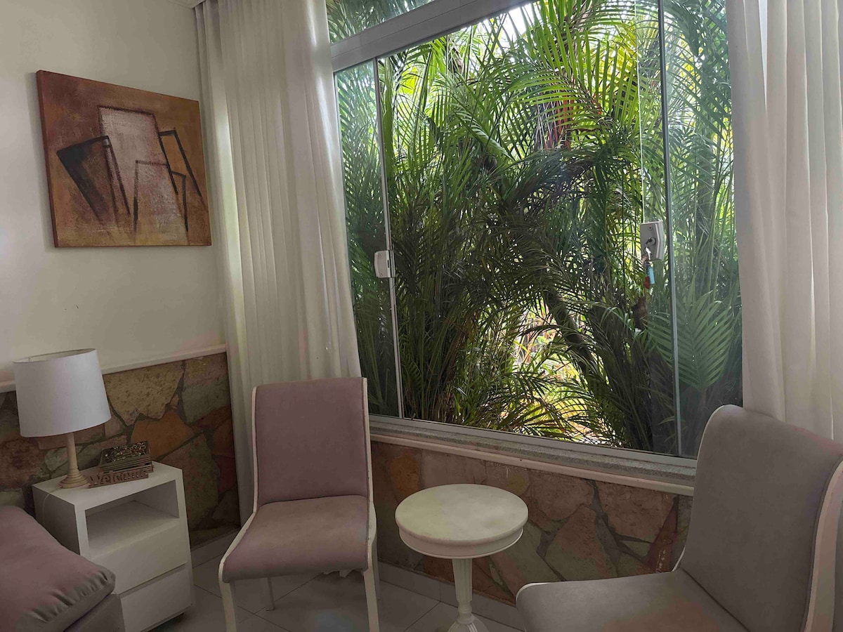 A Suíte Flamboyant chez Ju é um estúdio-oásis, muito bem localizado, no coração da Asa Norte. Tem uma refrescante vista para o verde e comércio super completo pertinho (hortifruti, cafeteria 24h, drogaria 24h, restaurantes, lavanderia, lotérica...) Excelente opção para quem está a serviço, pretende se mudar, renovar passaporte ou visitar familiares e amigos. Documentos dos hóspedes poderão ser solicitados antes do check-in para registro na portaria. Confira minha outra suíte, a Acácia!!!