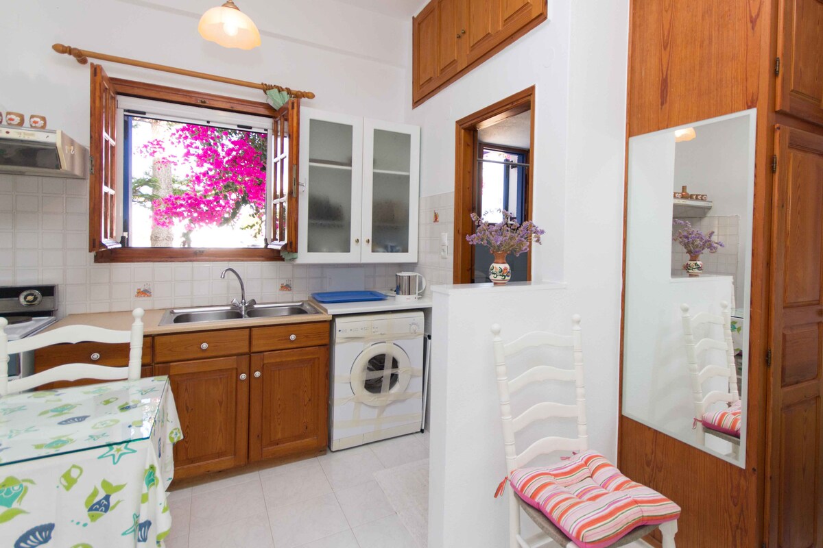 Bu mənzil limandan və qədim Parikia şəhərindən piyada 10 dəqiqəlik məsafədə yerləşən sakit məhəllədə yerləşir. Bu mənzil tam təchiz olunmuş mətbəxi olan 2-3 nəfər üçün mükəmməl uyğun gəlir. Burada güllərlə əhatə olunmuş gözəl oturma sahəsi, istirahət etmək və səhər qəhvə içmək üçün mükəmməl bir məkan olan ön həyəti var. Həmçinin sürətli dalğıclıq və mükəmməl gün batımı mənzərəsi üçün sizi dənizə aparan yol var. Yolun yuxarı hissəsində asan nəqliyyat üçün avtobus dayanacağı var.