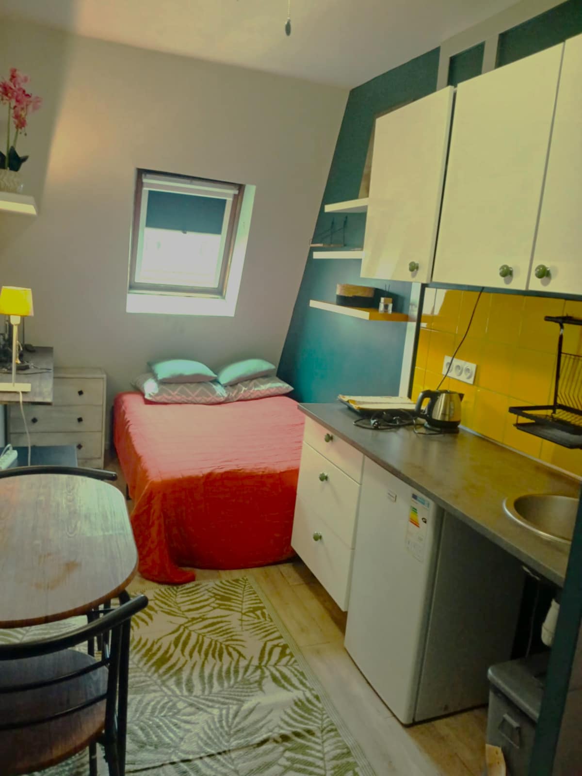 Bu, zəif ürəkli insanlar üçün deyil. Bu rahatlıq cocuquna çatmaq üçün zamanla zədələnmiş, Moulin Rujunu xatırladan köhnə pilləkən vasitəsilə 6 mərtəbəyə qalxmalısınız... özünüzü Kristian və Satin kimi hiss edəcəksiniz... Orada gözəl Haussmann binasının damında tam təmir edilmiş studiya tapacaqsınız. Qonaq otağı Trocadéro bağlarına baxarkən sakit bir mezonda (tam qaralma seçimi) yatacaqsınız... Davam edin və bu pəncərəni açın... o, demək olar ki, məsafəyə toxunur:)