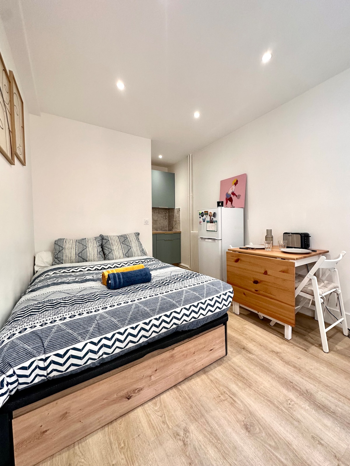 Kiçik mənzil işıqla çimir. Rahat və ilıq. Lift/lifti olan 7-ci (üst) mərtəbədə. Cənubla üz-üzə. Parisə baxan möhtəşəm mənzərəsi olan yaraşıqlı terras yemək və istirahət üçün idealdır. Şəhərin gözəl abidələrinə günün və gecənin bütün saatlarında heyran olmaq mümkündür. Mənzil Butte Montmartre zirvəsinə aparacaq funikulyor dəmir yolu ilə Sacré Coeur dağının ətəyində yerləşir. Turist fəaliyyətinin tüstüsündən uzaq, kiçik, sakit bir küçədə yerləşir. Yerləşdiyi məkana görə bu cazibədar mənzil daha çox üstünlüklər təmin edir: - 5 dəqiqəlik gəzinti məsafəsində bir çox mağaza ilə canlı qonşuluq, - üç yaxın metro stansiyaları, Anvers (xətt 2), Abbesses (xətt 12) et Barbes-Rochechouart (xətt 4), səfər zamanı Parisin mərkəzinə, əsas dəmir yolu stansiyalarına və digər maraqlı yerlərə asan və sürətli çıxış üçün. Mənzil yenicə tam təmirdən çıxıb və bu yaxınlarda AIRBNB siyahılarında yerləşdirilib. Tam təchiz olunmuş mətbəx qonaq otağının üzərinə açılır. Yeməklərin rahat hazırlanması üçün bütün müvafiq ləvazimatlar (soyuducu, qril, soba, induksiya bişiricisi, souslar, çaydan və digər mətbəx ləvazimatları) təqdim olunur. İkili yatağı (140X200 sm) olan yataq otağı sizə rahat yatmağa və səhər yuxudan Paris səmasının ecazkar mənzərəsinə oyanmağa imkan verəcək. Balaca, tənha balkon səhər çay və ya kofe fincanınız üçün ideal bir şərait təmin edir. Qonaq otağında tələb olunduqda bir və ya bir neçə qonağın xeyrinə əlavə divan-kreslo (140x190 sm) var. Duş və tualeti olan kiçik, yaxşı işıqlandırılmış vanna otağı var. Aşağıdakı imkanlar da təmin edilir : TV, Blue-ray player, Wi-Fi, tozsoran, elektrik dəmir, qarderob və s. Küçədə daha bir yuyulma da var. Tələb oluna biləcək hər hansı məlumatı (nə etmək, nə görmək və s.) təmin etməyə kömək etməkdən məmnunluq duymalıyıq. İlk ziyarətçilərimizi qarşılamaq və onların qonaqlaması ilə bağlı məxfi rəy əldə etmək arzusundayıq.