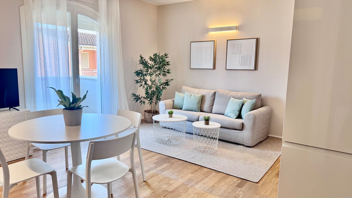 Enjoy a seamless stay at this fully renovated, stepless entry apartment on a peaceful street. Sleeps 4 with a king bed, premium sofa bed (with added topper for comfort), and sleek, fully equipped CREO kitchen. Features two smart TVs, fast fiber Wi-Fi, and powerful AC in every room. Free easy street parking right outside. Walk to Corso Umberto (8 min) or the scenic waterfront boulevard (15 min); beaches are a 15min drive by car. Spotless, professionally managed & perfect for easy urban living