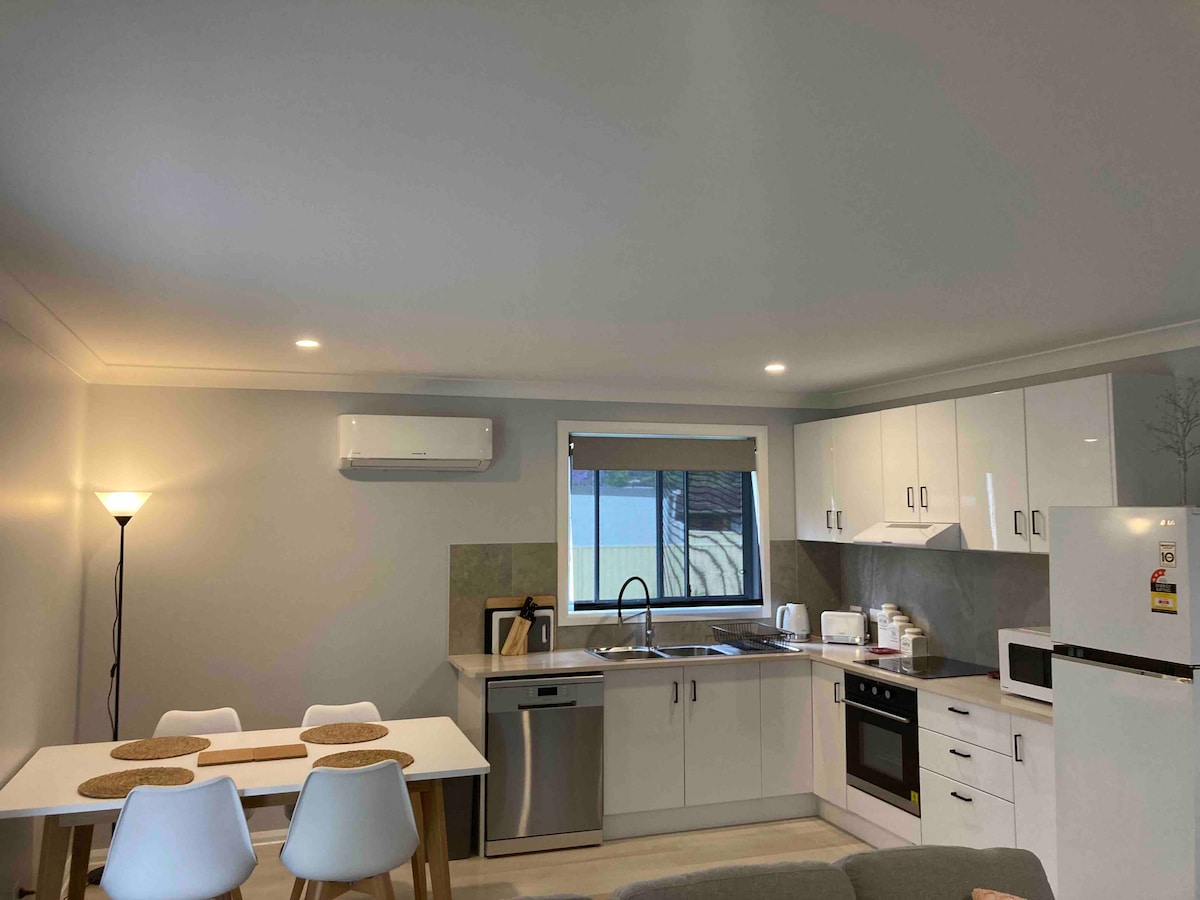 Sakit qonşuluqda, ictimai nəqliyyata yaxın, restoran, mağaza və çimərlikdən qısa məsafədə yerləşən bir yataq otağının özülü və yaxşı təyin edilmiş mənzil. Asan öz-özünə giriş və çöldə parkinq var. Müasir mətbəx şkafında mini bar soyuducusu, mikrodalğalı soba (soba yoxdur), krujeva və çəngəl-bıçaq, çay və yerüstü qəhvə seçimi var. Böyük, müasir hamam otağında paltaryuyan maşın və quruducu var. Gözəl Qəhvə Sahilində rahat dayanacaq və ya daha uzunmüddətli qonaqlama üçün mükəmməldir.