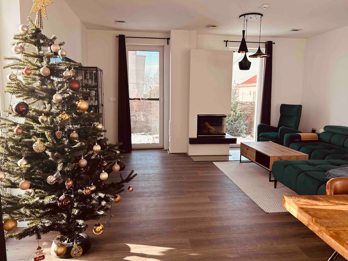My house is situated in beutifull town in small distance from Bratislava.(20min) Area is very private with all new-build houses around, very close to vineyards and woods close by. It' s suitable for 6people. Downstairs area consists from one large open living area with large sofa, television and kitchen with all equipments, dishwasher,fridge-freezer,oven,microwave and all electrical appliances needed. Upstairs have 3 large bedrooms. Every bedroom have a smart TV. One Bathroom with bath,shower,toilet and washing machine. The house is perfect for larger families,group of people,couples or alone travelers for holiday or business trip, good for few-days stay, longer stay. Outside have a large garden with small swimming-pool,large patio with BBQ grill,lovely sitting area for summer days.