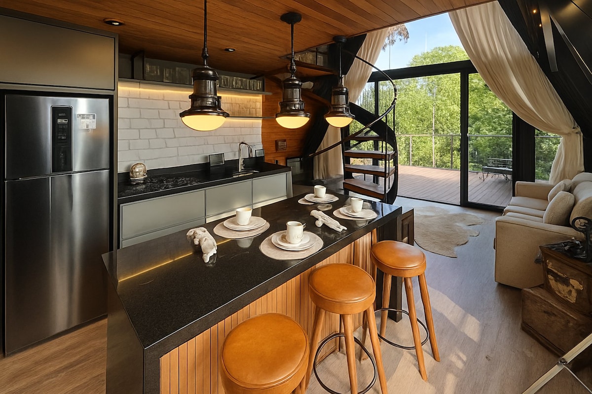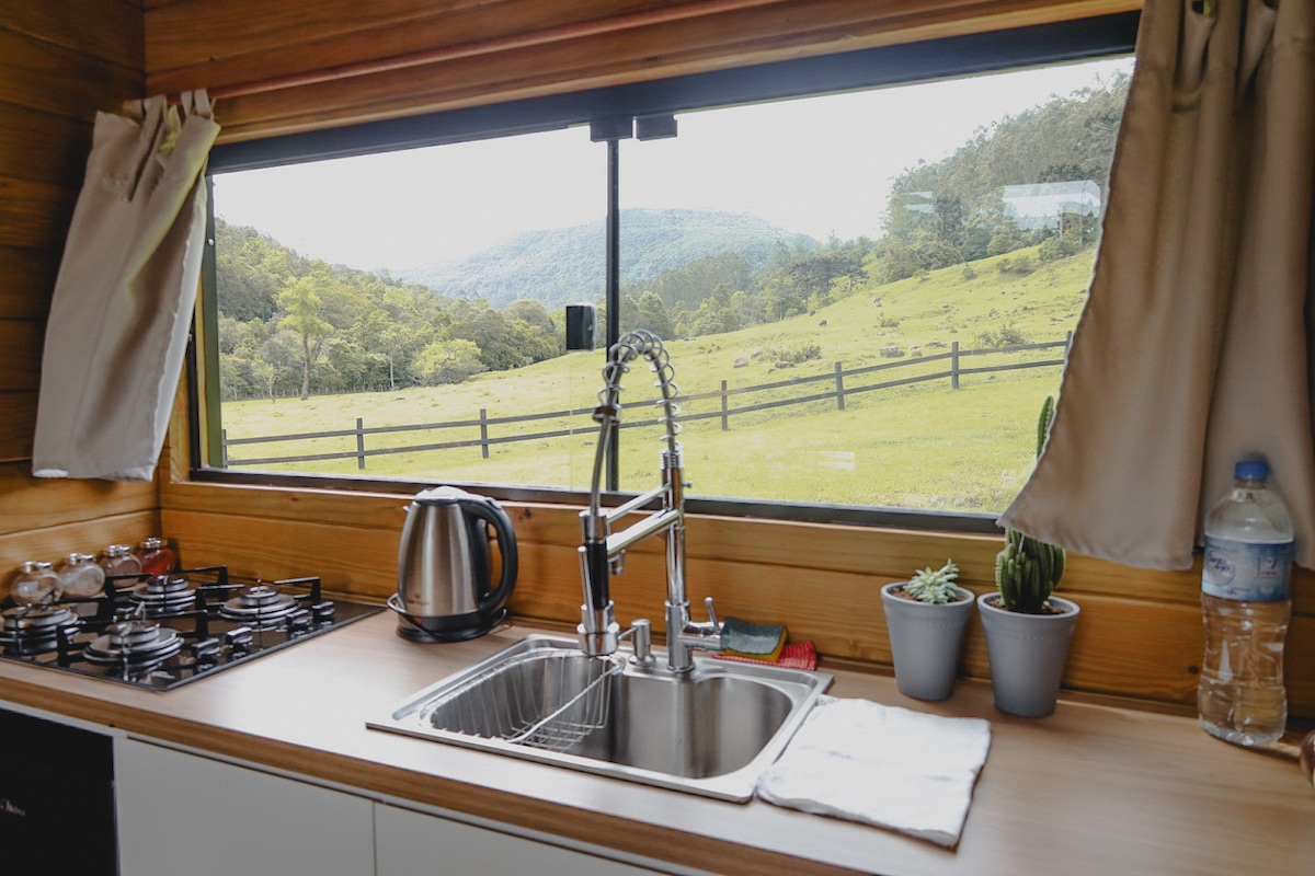 Cabana Jasmine — səssizlik və düşüncə sığınacağı. Quşların mahnısı və meşənin qoxusu arasında yerləşən Jasmin Kabinəsi sizi dincəlməyə dəvət edir. Sítio Nós na Terra-da yerləşir, Serra Gaúça və 45 m² təmiz rahatlıq mənzərəsi açılır. Sükut, rahatlıq və təbiət burada bir araya gəlir. İstəsəniz, bitkilərlə parça boyama, tikiş dərsi və Atelyeyə baş çəkmək kimi unikal təcrübələr yaşaya bilərsiniz. 🌿 Burada hər səhər üfüq yeni rənglərlə boyanır, axşam isə dincəlmək üçün əsl fürsətdir.